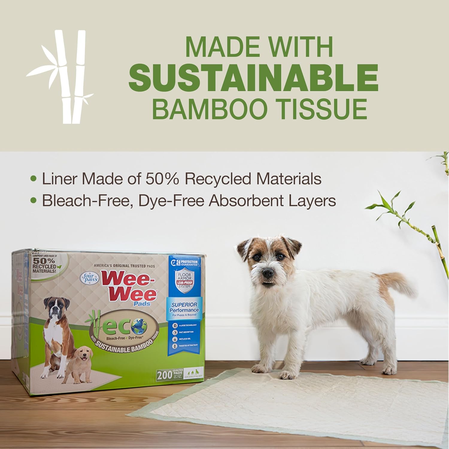 Four Paws Wee-Wee Superior Performance Bamboo Pee Pads for Dogs, Earth Friendly Dog & Puppy Potty Training Pads, Crate Liners, Housebreaking Supplies, 22" x 23" (32 Count)