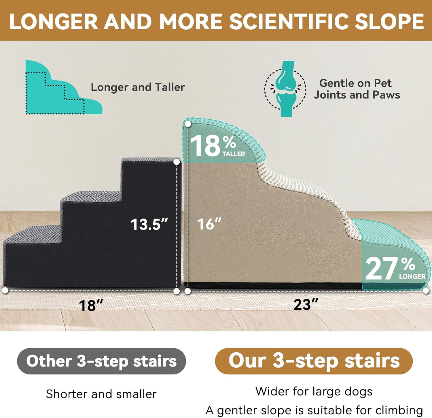 Dog Ramp and Stair for Bed 16" H-20 H,3-Step Cat Stair for Sofa and Chair,4-Step Dog Ramp for High Bed and Window,Durable Nonslip Fabric Cover for Indoor (Beige-16 H, Pet Friendly, 3)