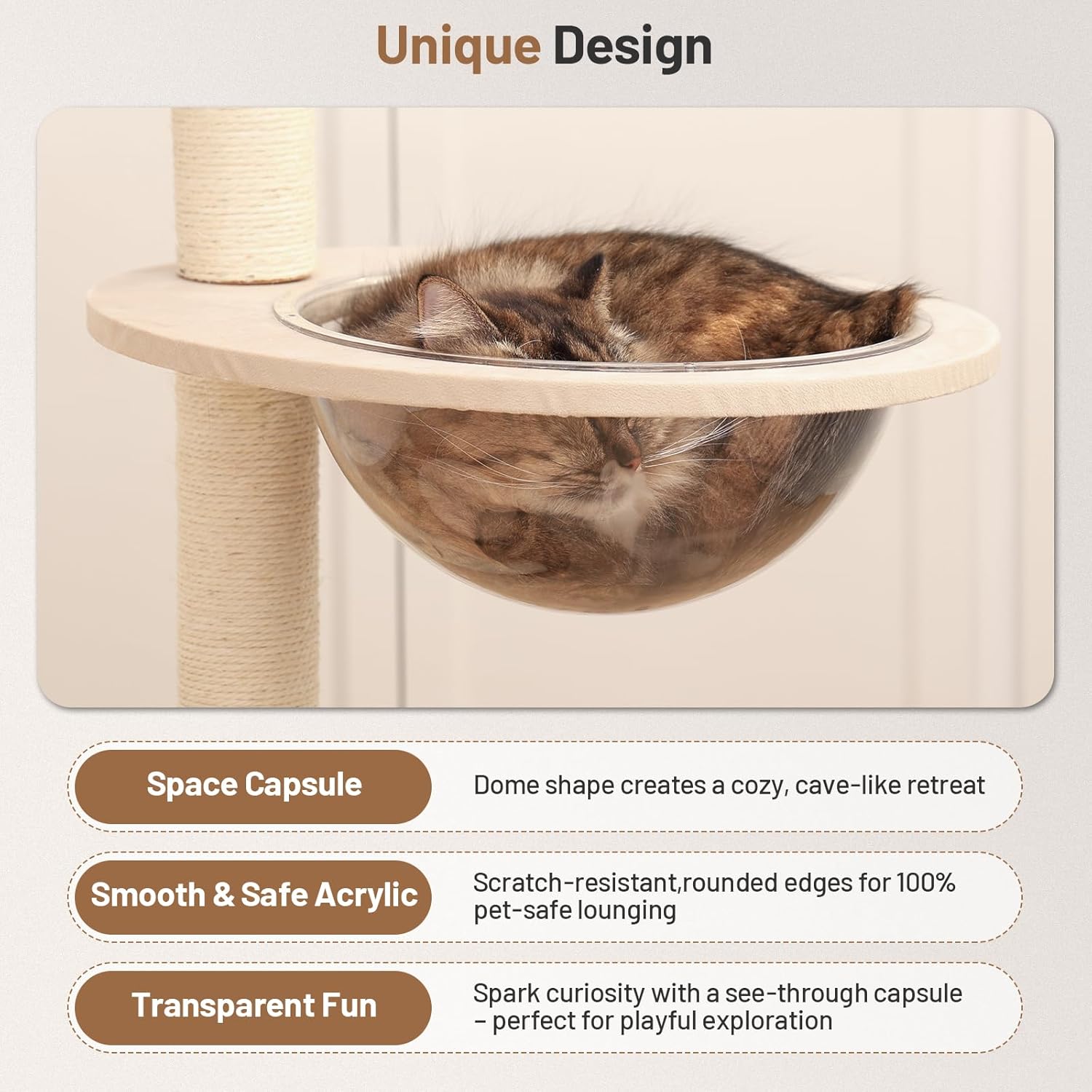 • Eco-Friendly & Durable Materials:Built to heavy-duty cat tree standards, our cat climbing tower uses 15mm thickened E1-grade particleboard (formaldehyde-free) and natural sisal-wrapped posts for safe scratching. The handwoven rattan nest is non-toxic and durable, while the smooth acrylic semi-circle adds a modern touch.