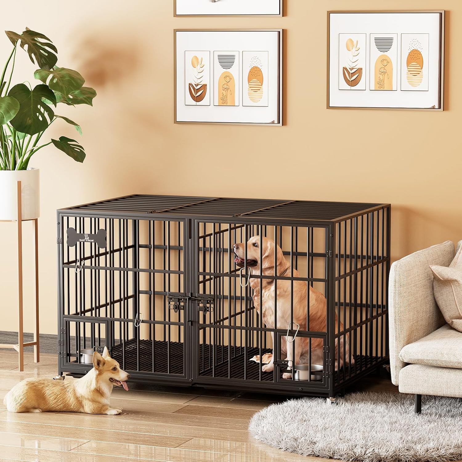 - 【Removable Divider】The dog crate with divider meets your different needs, the divider divides the crate into two spaces, which can either directly accommodate two puppies or serve as two functional areas for one puppy to eat and sleep. Remove the divider and it becomes a large dog crate.The nameplate is designed to give your puppy his own home.
