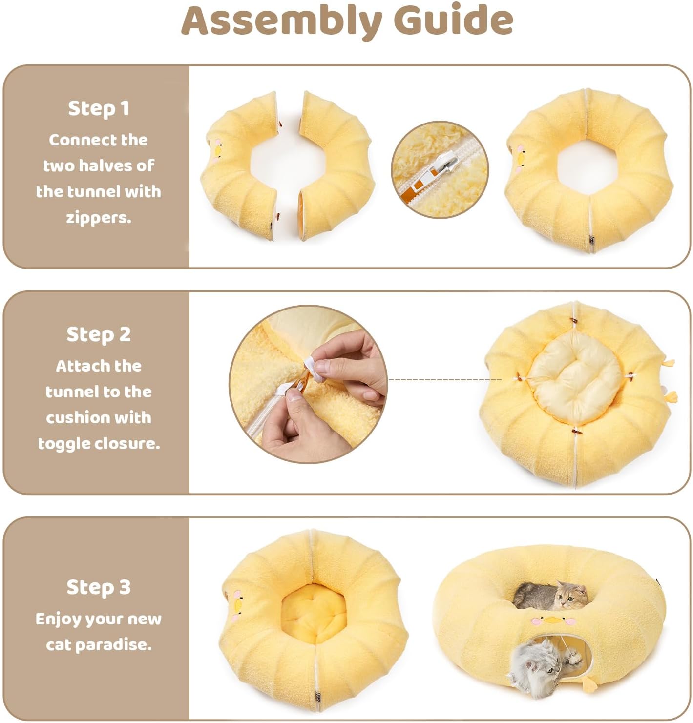 - Versatility: The innovative 2-in-1 cat tunnel bed allows your pet to play and rest at the same time. Designed with the excitement of a zippered play tunnel and the serenity of a cozy nap.