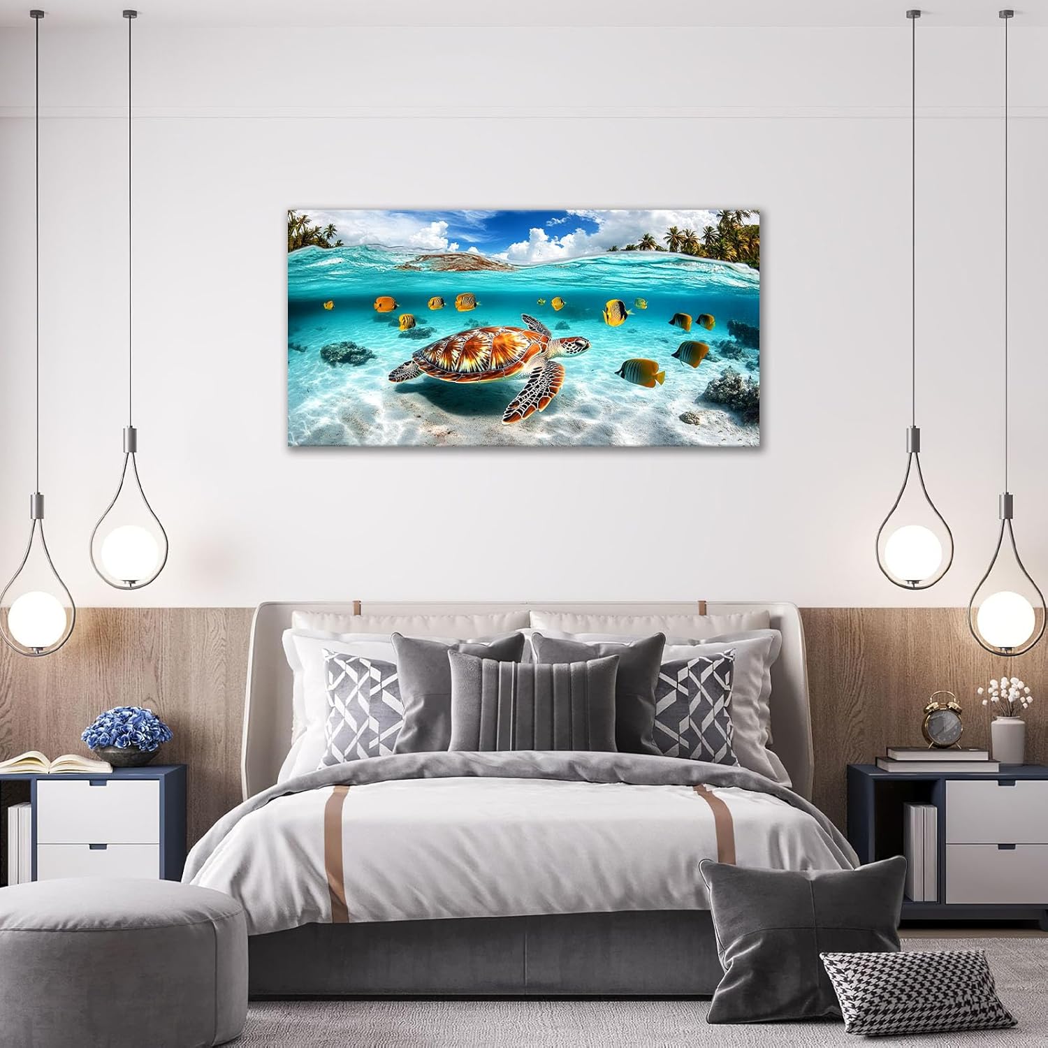 Quorin Sea Turtle Large Wall Art Coastal Undersea Beach Fish Pictures Wall Decor Tropical Island Canvas Print Painting Artwork for Bathroom Living Room Bedroom 30"x60"