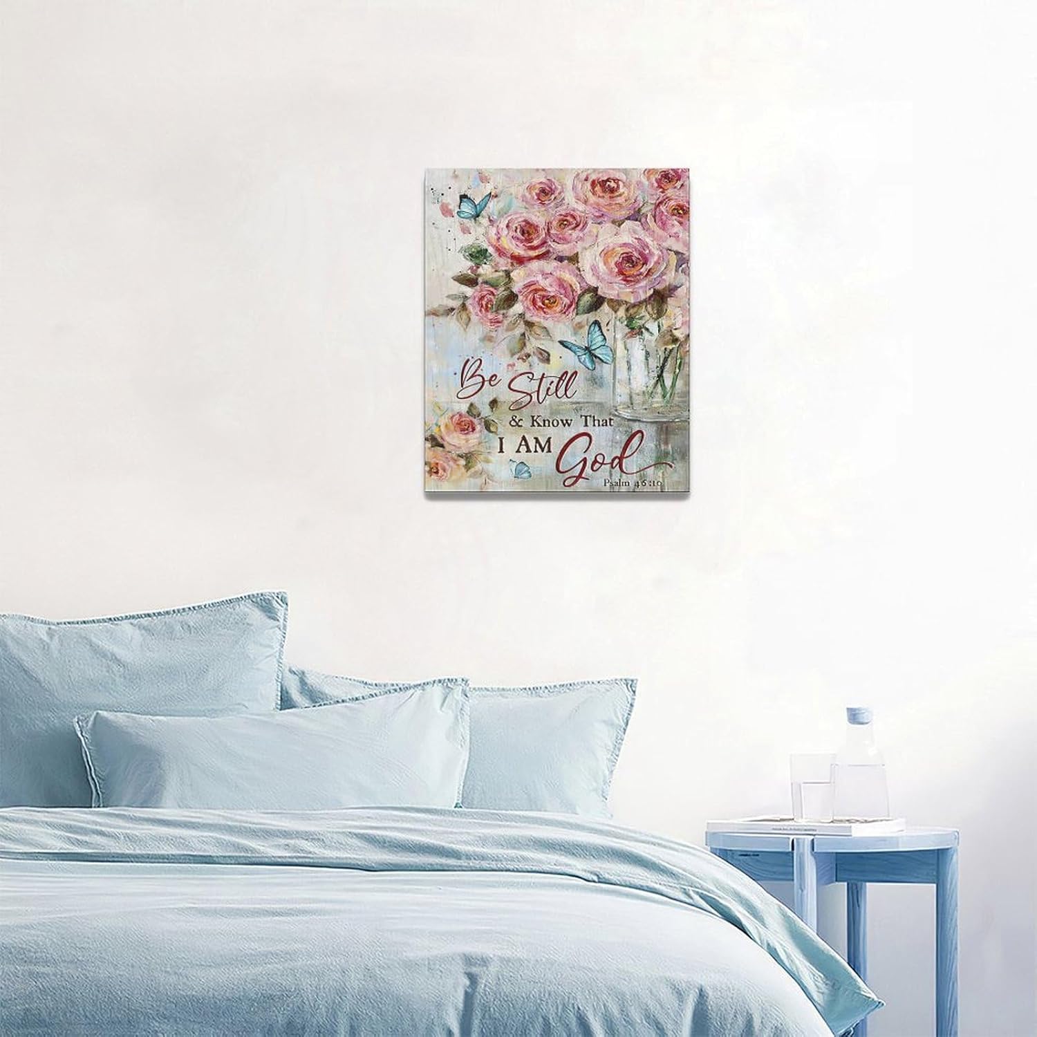 Farmhouse Rose Wall Art Christian Scripture Pictures Pink Rose Wall Decor Rustic Floral Butterfly Canvas Print Painting Artwork for Bathroom Living Room Bedroom 16"x20"