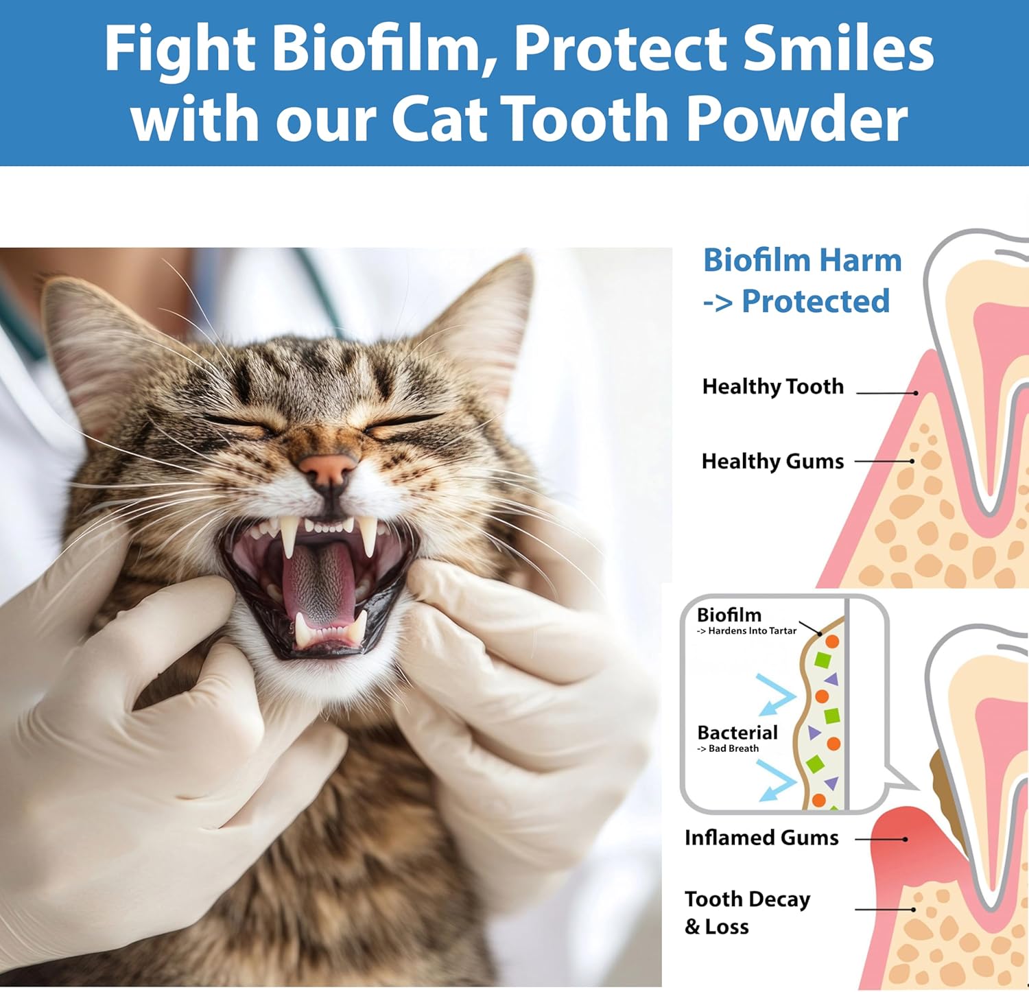- Tailored for Cat Dental Health: Specially formulated for feline oral care; our cat dental powder contains natural extracts and probiotics; helps prevent plaque and tartar buildup; soothes gum discomfort; promotes a healthier mouth for cats of all breeds and sizes.