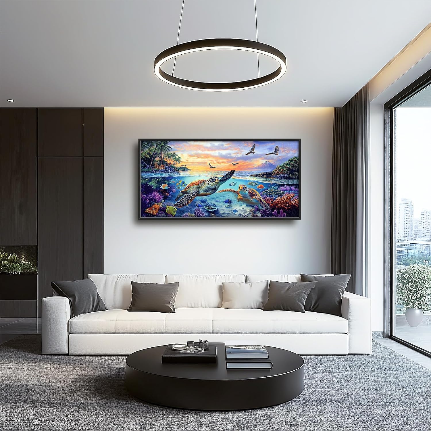 Framed Large Sea Turtle Wall Art for Living Room, Oversized Ocean Turtle Wall Decor Seascape Underwater Marine Life Canvas Painting Home Decoration for Living Room Bedroom Office 60"x30"
