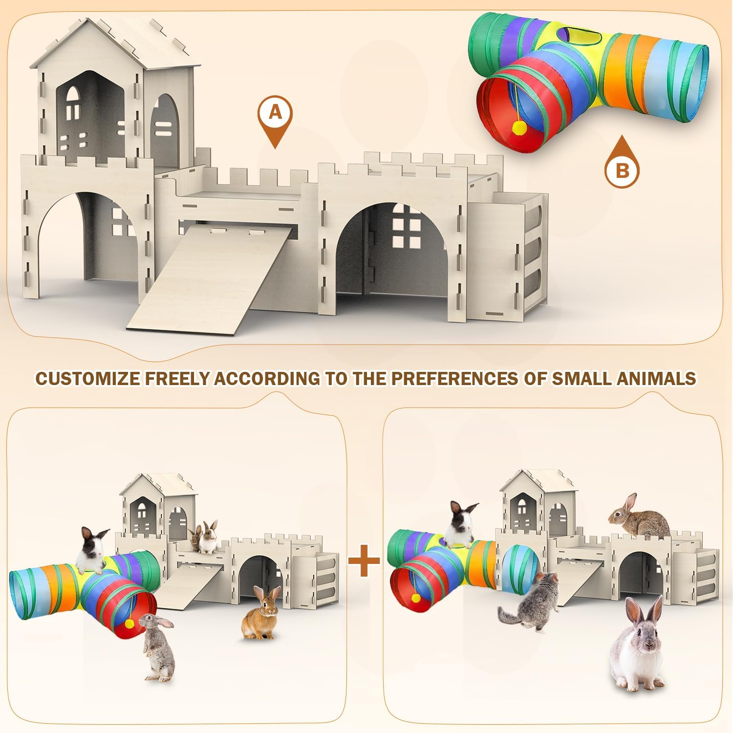 - 【Extra-Large Rabbit Hideout for Natural Behaviors】:Designed with zoologists, this bunny house features a Dual-layer design (sunbathing deck + hidden nest) to satisfy rabbits' instinct to hide and observe. 30% more floor space than standard rabbit houses and hideouts for unrestricted movement.