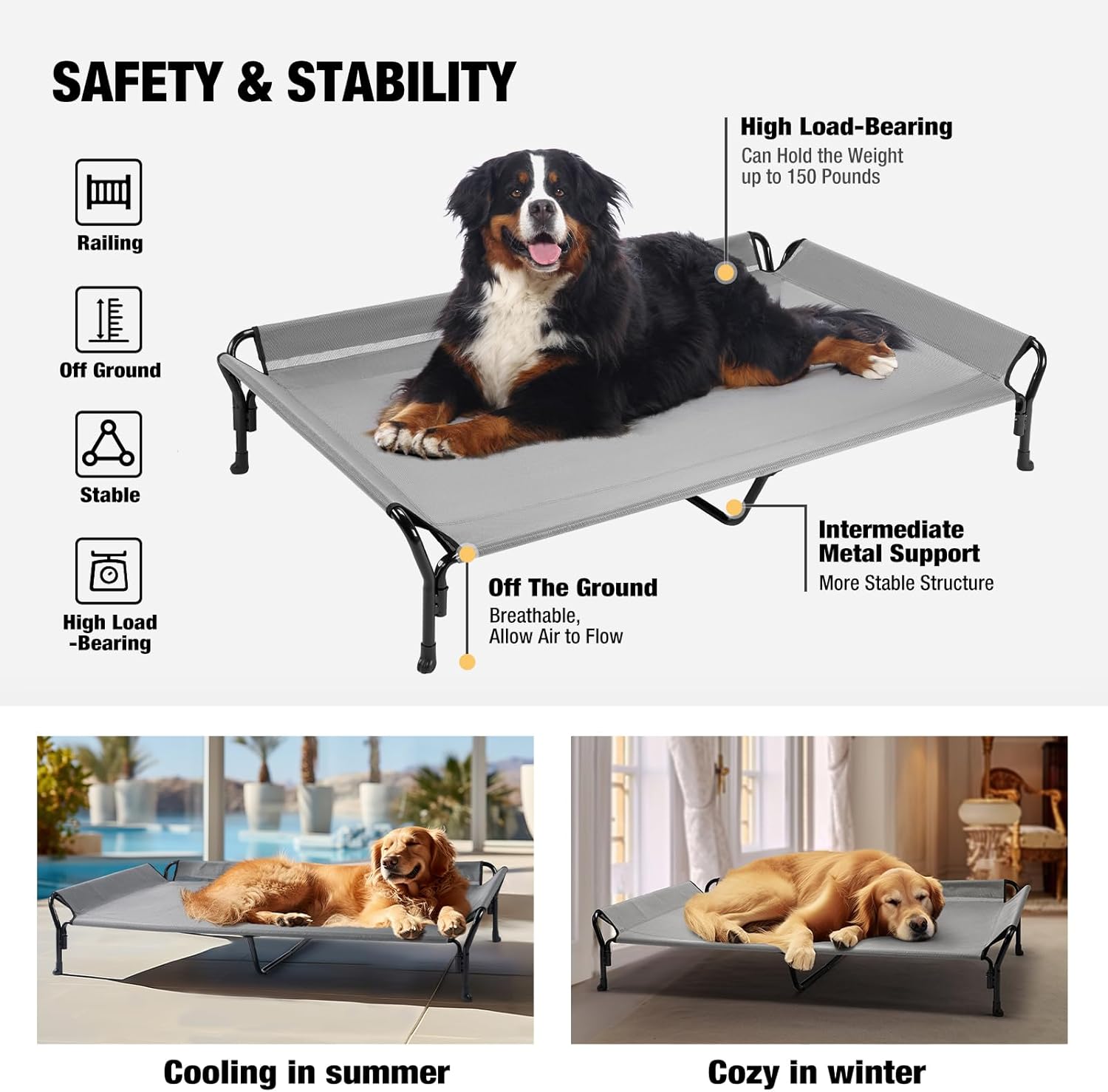 Veehoo Cooling Elevated Dog Bed, Guardrail Raised Pet Cot, Indoor & Outdoor XXL Pet Bed with Washable & Breathable Teslin Mesh, Non-Slip Feet, Dog Couch Bed, 62.5" x 37", Grey