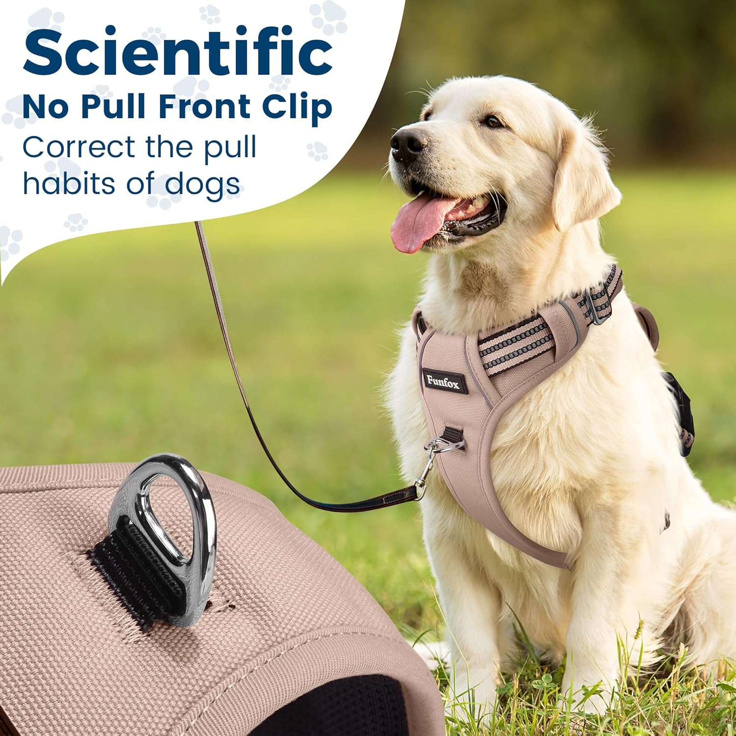 Funfox Dog Harness No Pull, Adjustable Pet Vest Harness, Super Soft Material with Vertical Handle Easy Control, Reflective Night Walking, 2 Leash Clips for Medium Sized Dogs, Brown, M