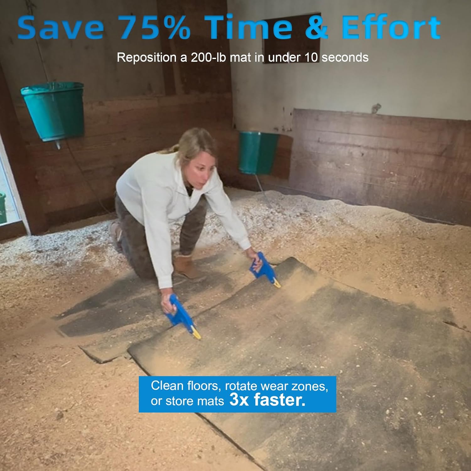 Heavy Duty Stall Mat Grippers - Pair of 2 Mat Movers Tool for Horse Stalls, Gym, Barn, and Trailer, Makes Moving Rubber Mats Easier, Saves Your Back and Hands
