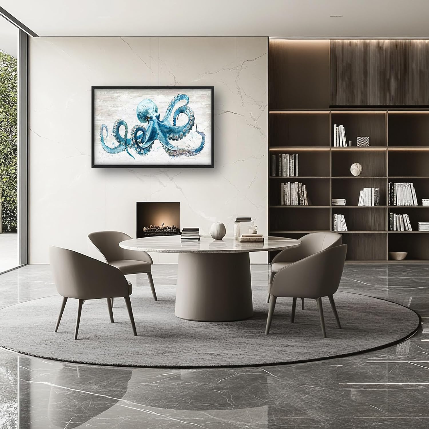 Octopus Large Wall Art Ocean Sea Nautical Pictures Rustic Blue Octopus Animal Wall Decor Canvas Print Painting Artwork for Bathroom Living Room Bedroom 36L" x 24W"