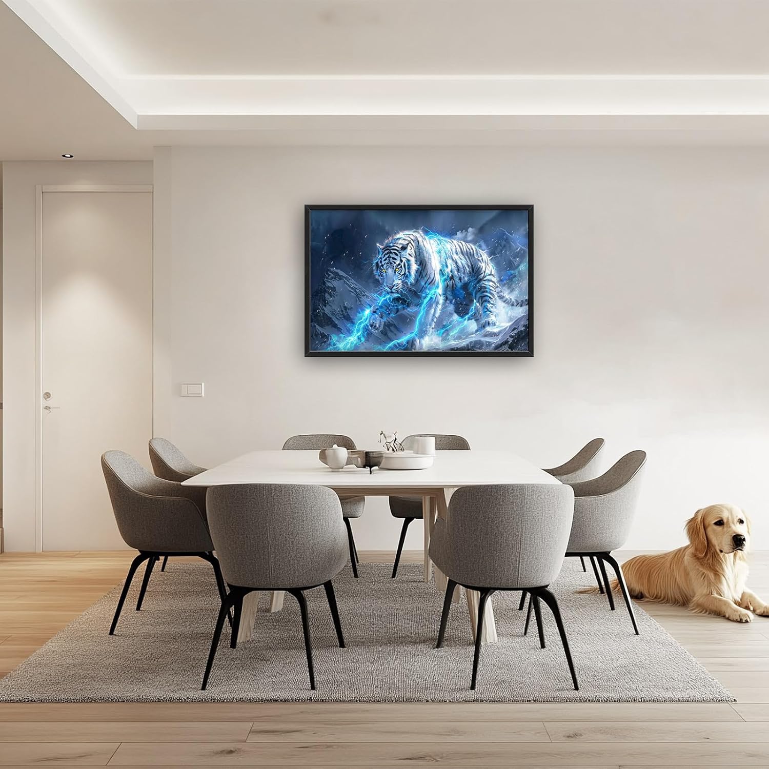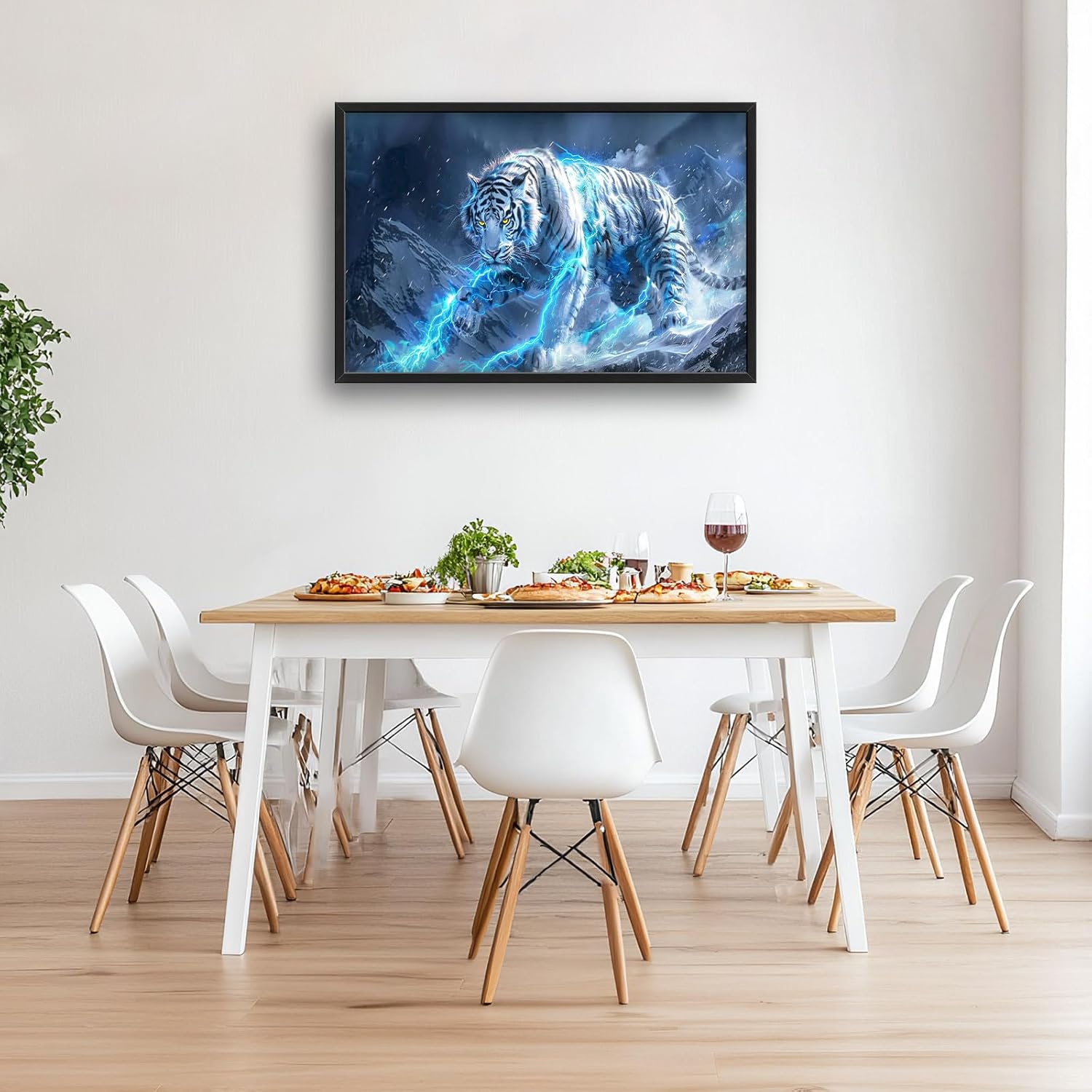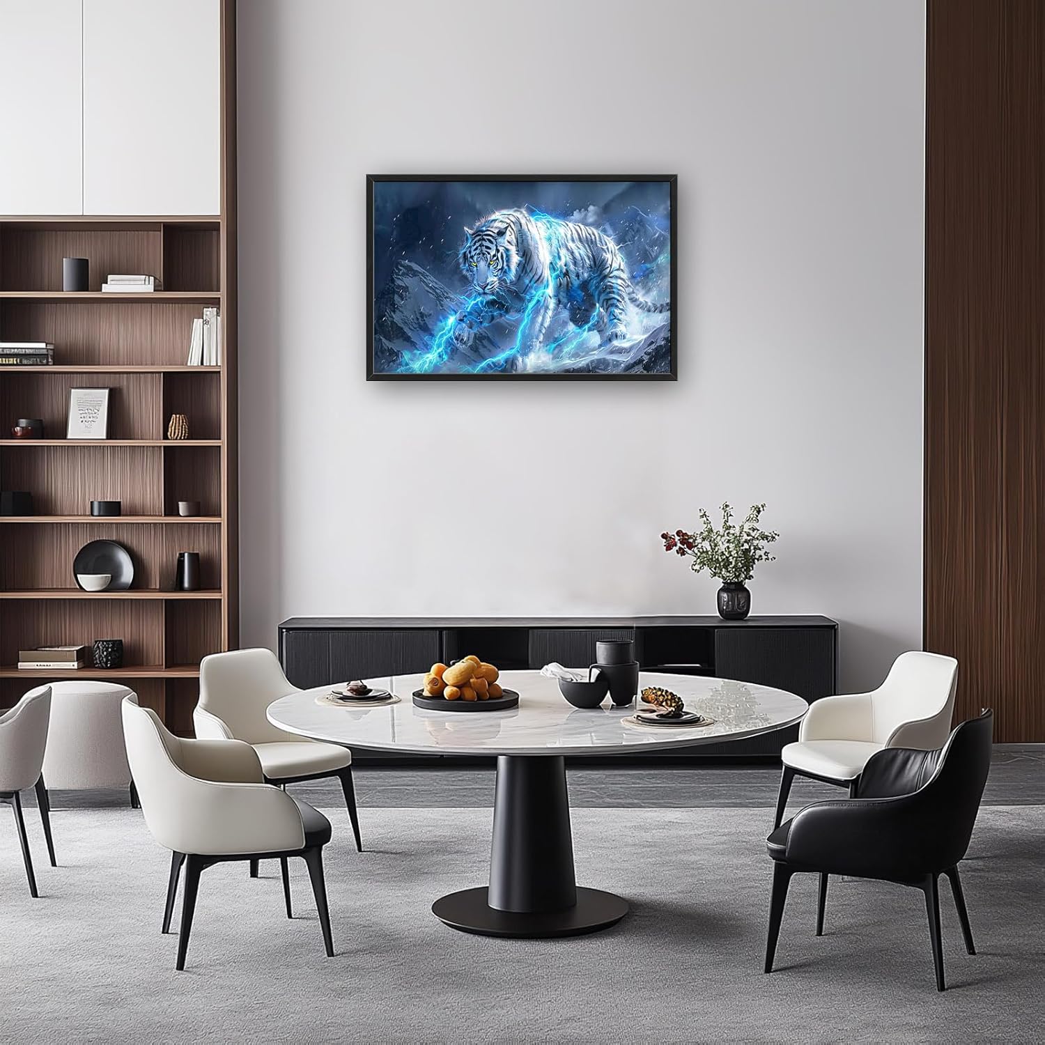 Quorin White Tiger Large Wall Art Wild Animal Pictures Lightning Tiger Wall Decor Snowy Mountain Canvas Print Painting Artwork for Bathroom Living Room Bedroom 36L x 24W