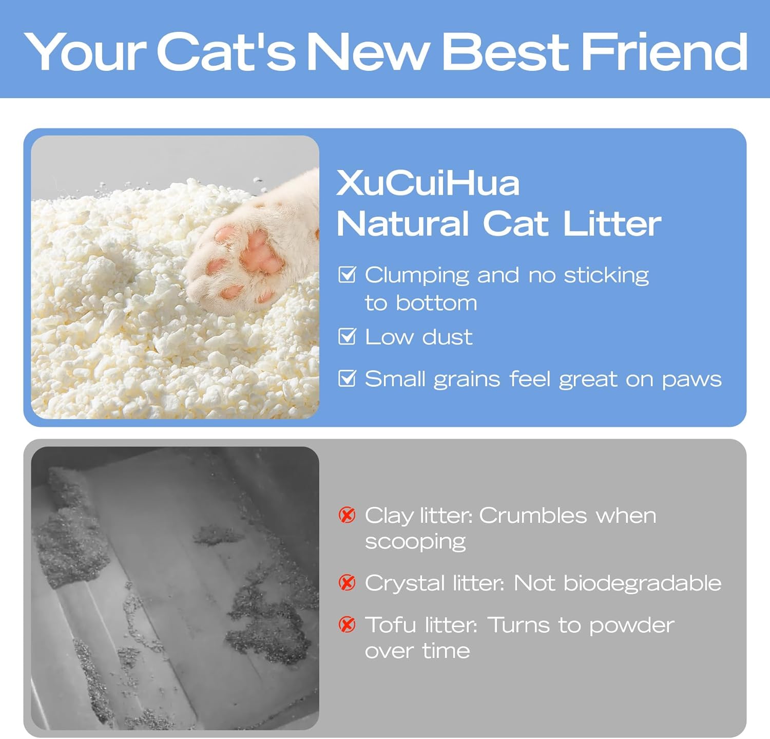 - 100% PLANT INGREDIENTS: Made from natural cassava and corn starch with no added chemicals or fragrances. This plant cat litter is safe for cats, safe for the environment—biodegradable and compostable.