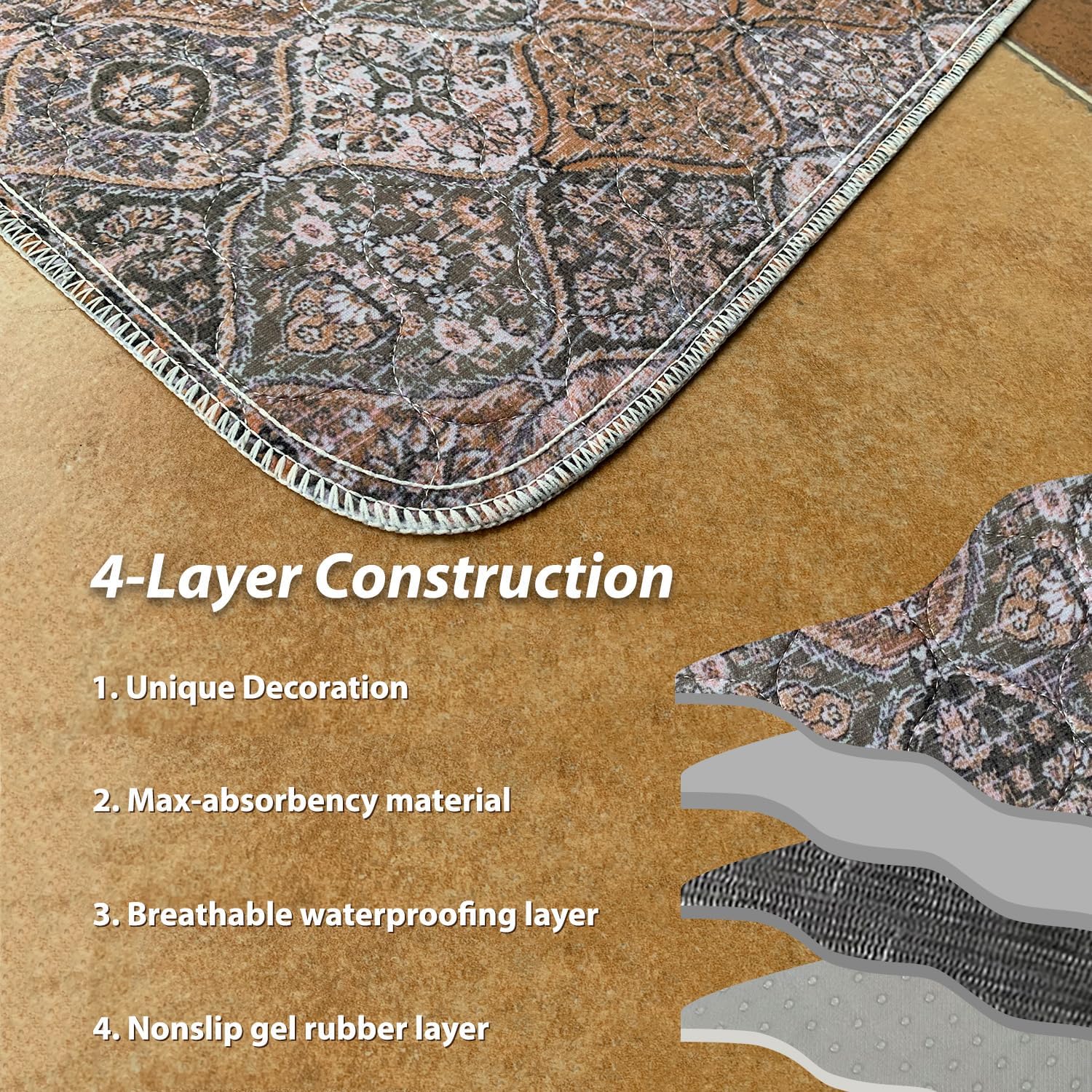nunubaby Washable Pee Pads for Dogs, Stylish, Non-Slip and Leak-Proof Pee Pads. Reusable Potty Pads for Dogs for Crates and Floors.(Brown/Multi, 24" x36")