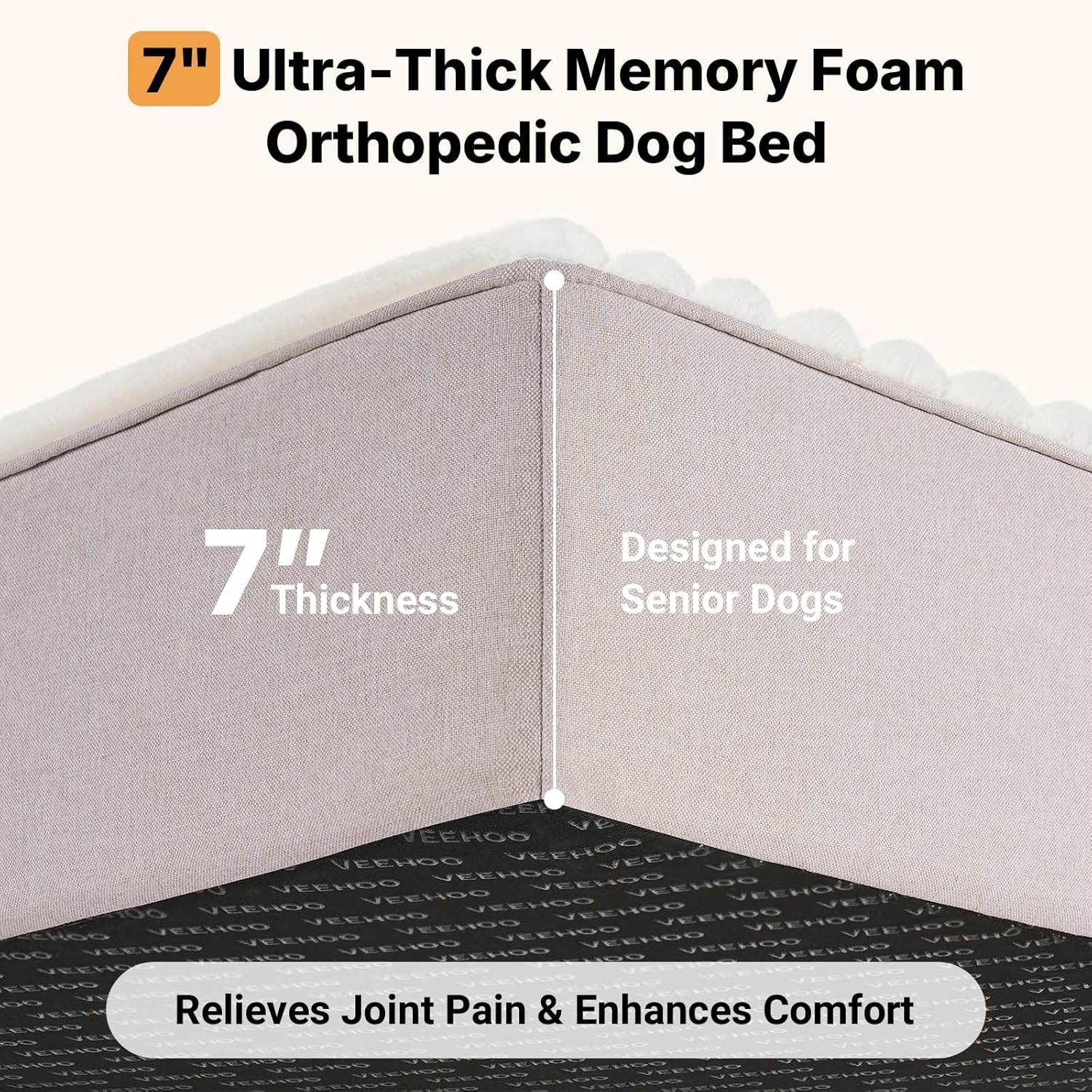 Veehoo Orthopedic Memory Foam Dog Bed, 7 Inch Thick Extra Large XXL Dog Bed for Senior Dogs with Ultra-Soft Fluffy Surface, Waterproof Liner, Removable Washable Cover and Non-Slip Bottom, 52"x36"x7"
