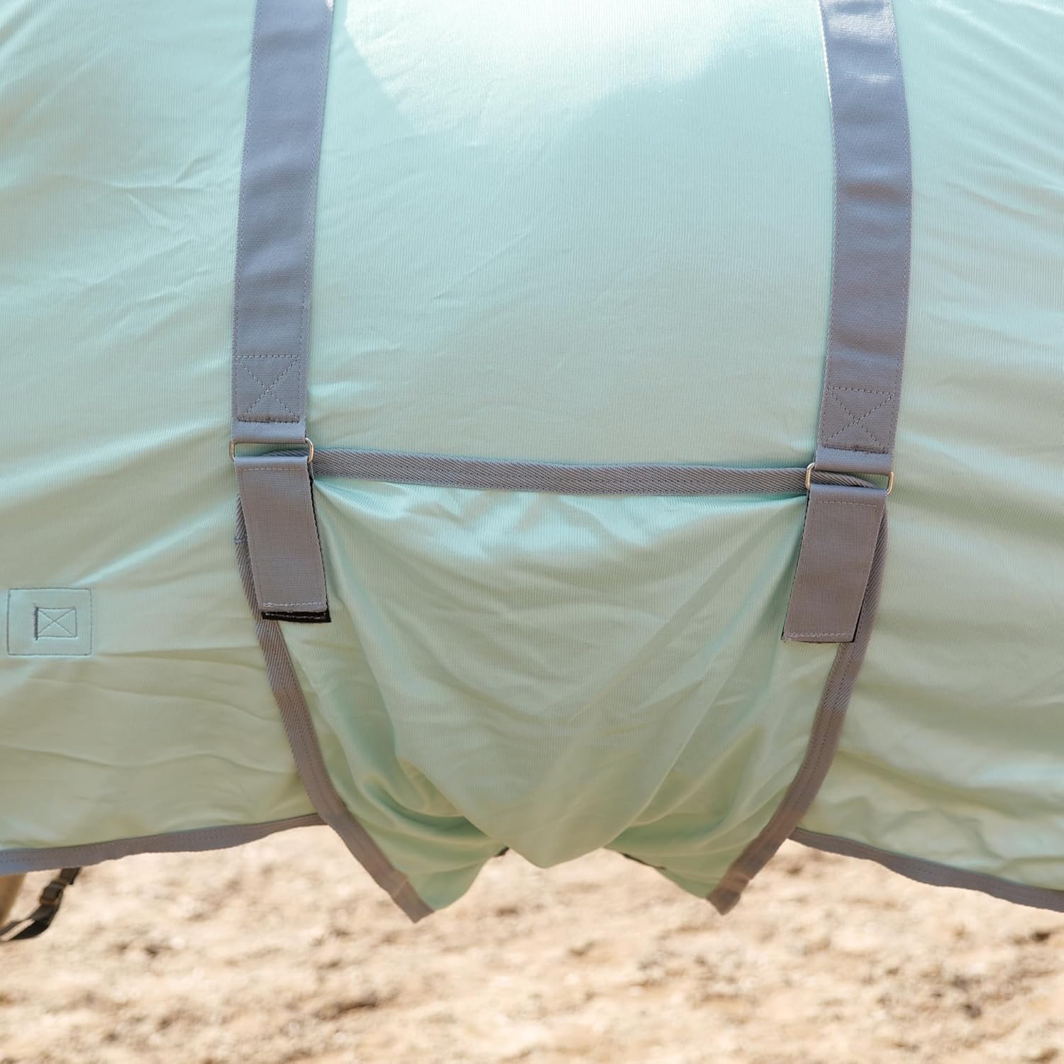 Horse Fly Sheet with Detachable Neck Cover & Belly Wrap, Adjustable Fly Sheet for Horses, Ventilated Airflow Mesh Equine Cooling Summer Flysheet Green 78