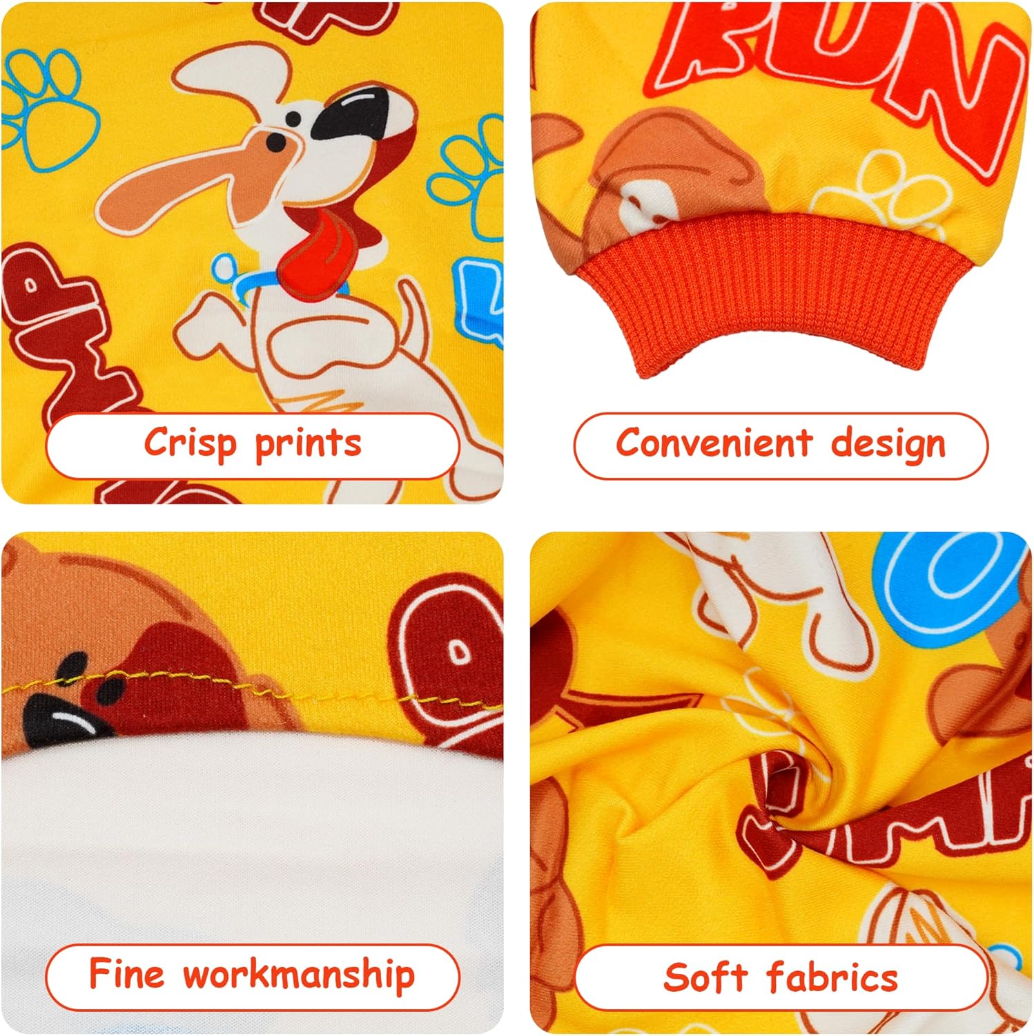 - Dog Pajamas Package:You will received 2PCS dog pajamas in 2 patterns for one package yellow and blue color,The bright color puppy jumpsuits can meet your dog needs for both male and female
