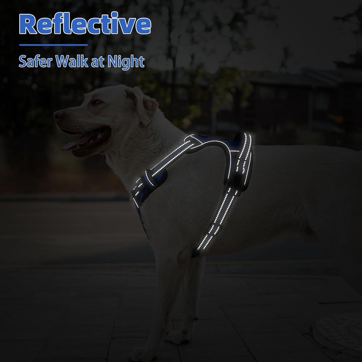 PUPTECK No Pull Dog Harness for Large, Adjustable Reflective Dog Harness with Handle Easy Control, Comfortable Soft Padded Pet Vest Harness for Extra Large Dogs, Blue XL