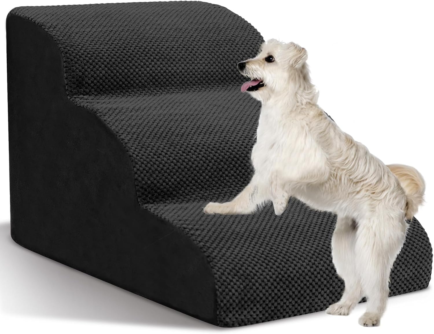 Dog Stairs for Small Dogs - High Density Foam Pet Steps, Extra Wide Dog Ramp with Non-Slip Bottom for High Beds, Couch and Sofa, Best for Dogs Injured, Older Doggy Cats,3 Steps, Black