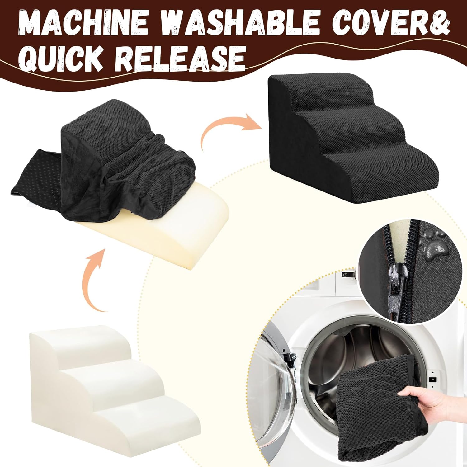 - Easy to Install and Clean: This pet step can be assembled and disassembled through simple steps. It is easy to clean. You can wash the removed cover by machine to keep the pet step clean and tidy