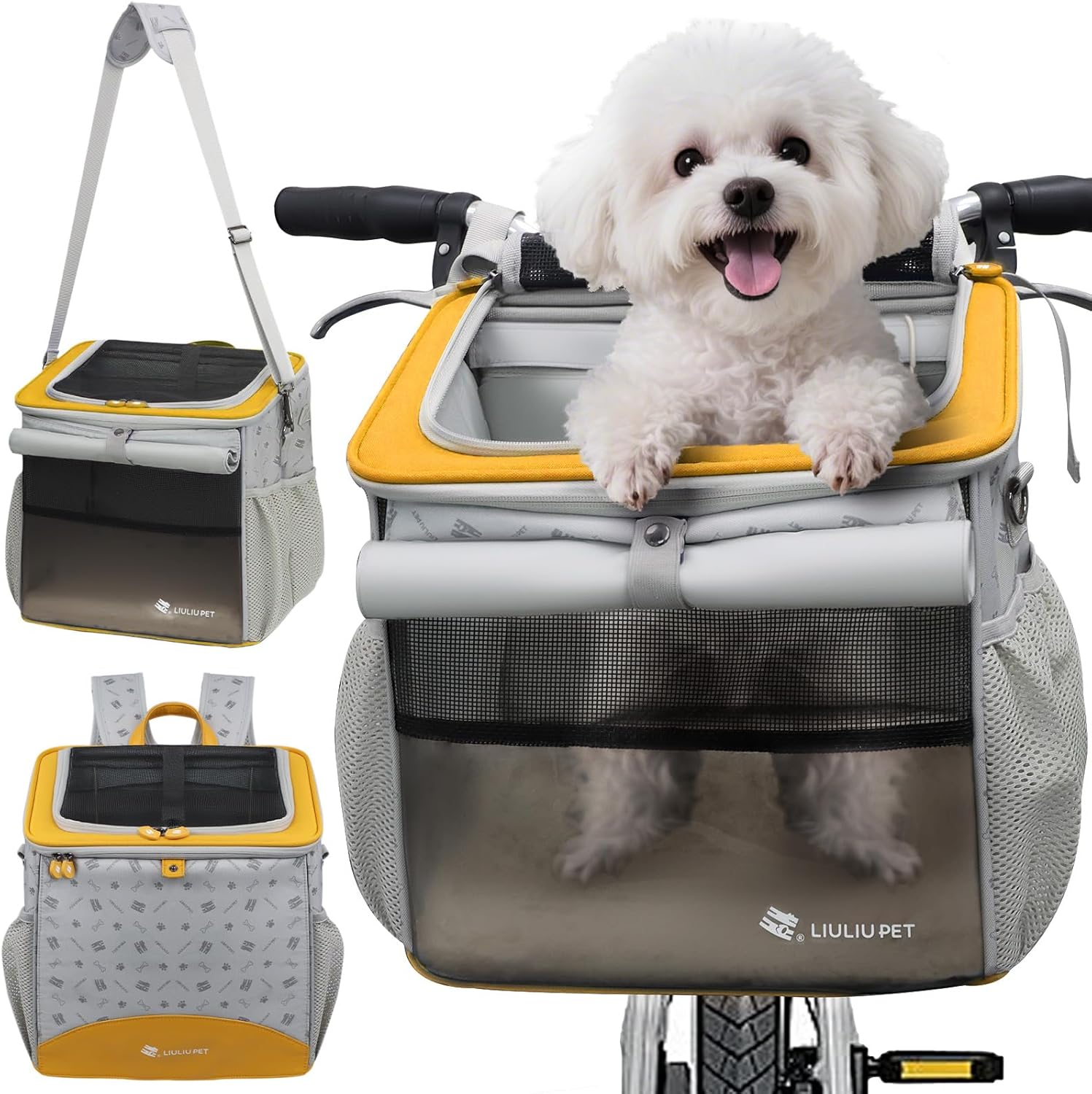 - LIULIUPET Cat and Dog Backpack Carrier, Breathable Cycling Pet Bag with Mesh Ventilation, Portable Outing Traveling Pet Bag with Top waterproof fabric for Small, Medium Cats, Small Dogs, Orange