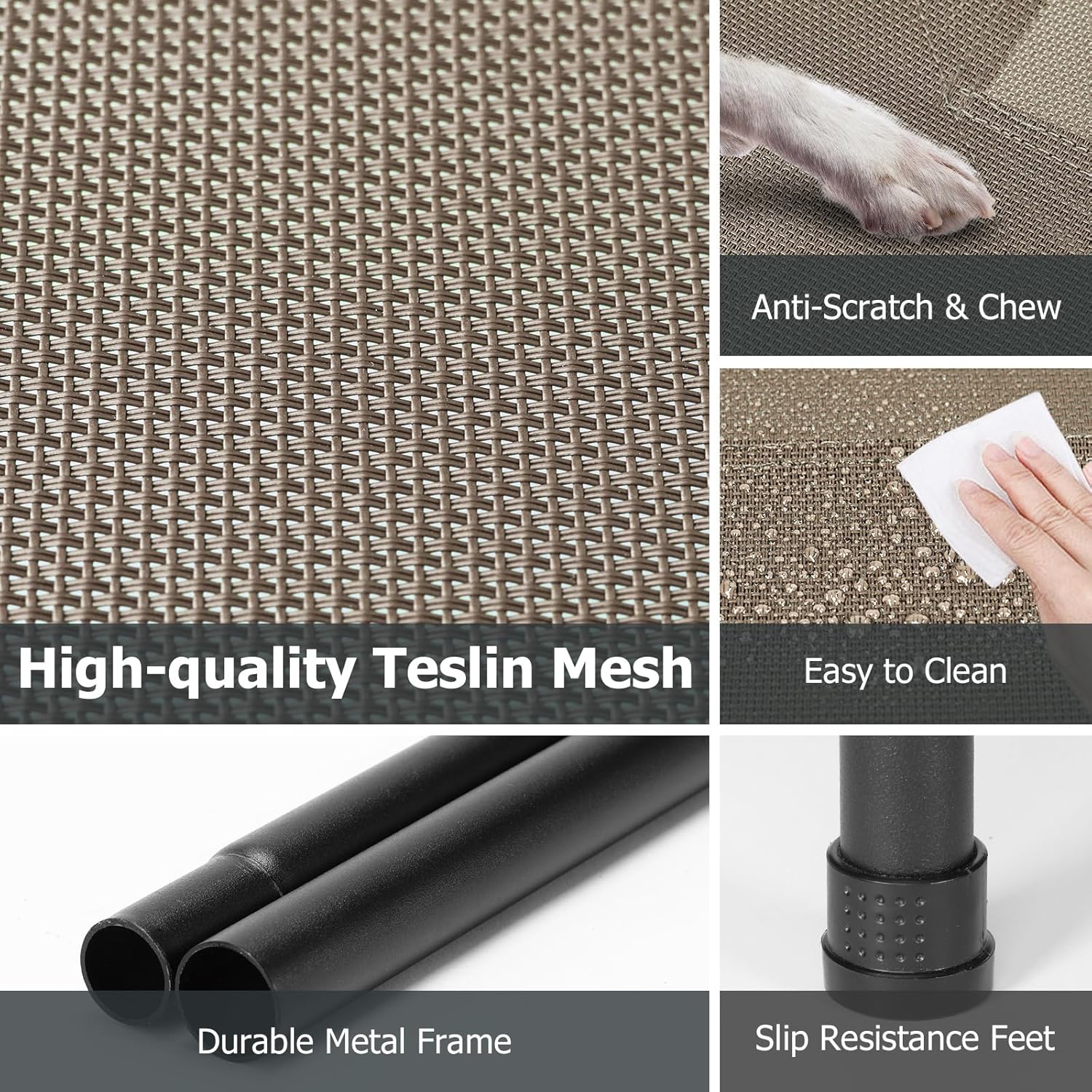 Elevated Dog Bed Outdoor, Medium Raised Cooling Dogs Cot, Lifted Pet Beds with Durable Breathable Teslin Mesh, Pet's Hammock with Non-Slip Feet, 35 inch Brown