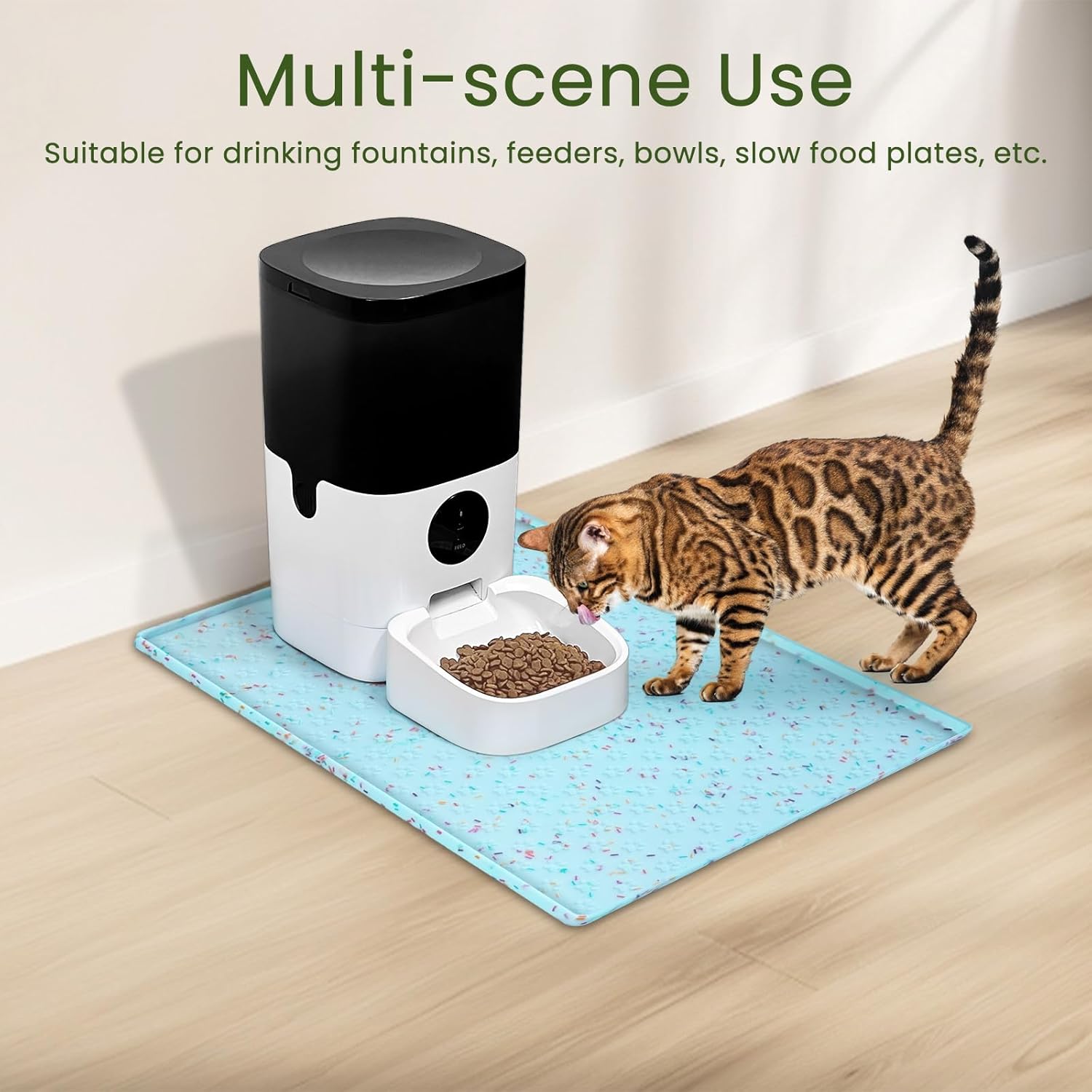 - Versatile Usage: This extra-large dog feeder mat accommodates various types of bowls and pet supplies - mats under dog food and water bowls, cat fountain, feeder stations and litter boxes for messy proof. Pet placemats are suitable for all breeds of cats, dogs, puppies and other animals.