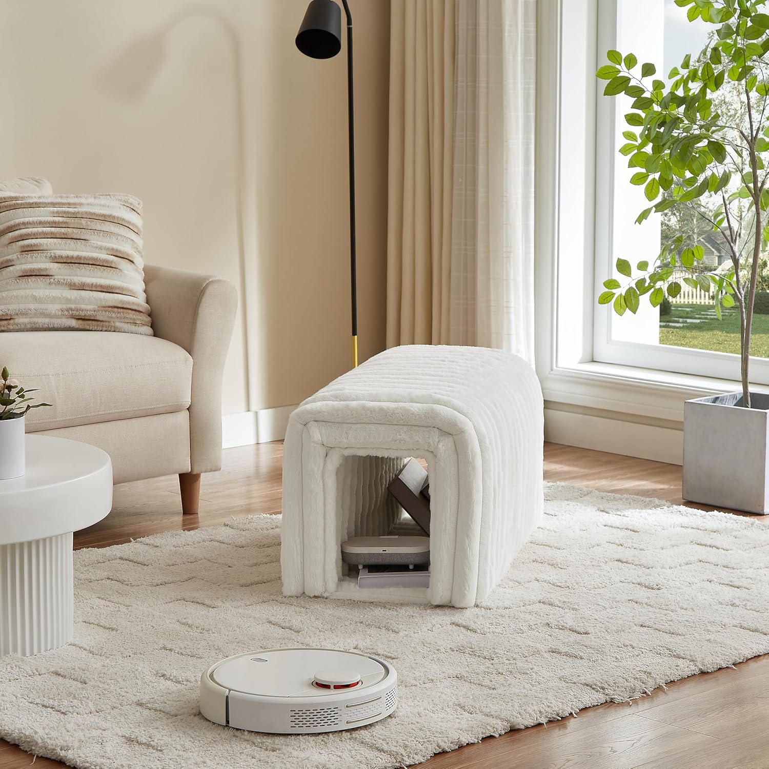 - ăArch hollow design, can both sit and "hide"ă It's not just a bench, it's a Storage compartment, and it's also a cat's nest to hide . It can hide the clutter of lifeïŒalso a secret base for cats ăYou can place movable cushions in the hollow area of the arch, so it's easy to clean and not afraid of getting dirty