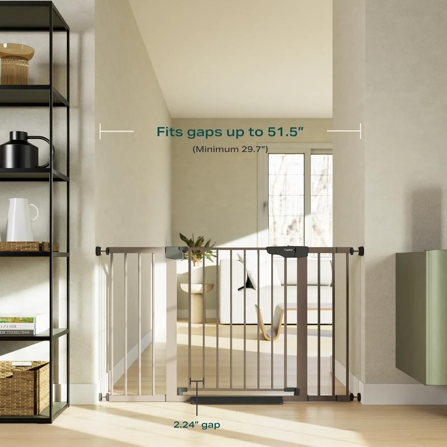 - Extra Wide Walk-Through for Easy Access: Fits openings from 29.7" to 51.5" wide and stands 30.5" tall. The 23.6-inch walk-through door provides more clearance than standard gates—allowing adults to pass through easily, even when holding a baby or carrying items.