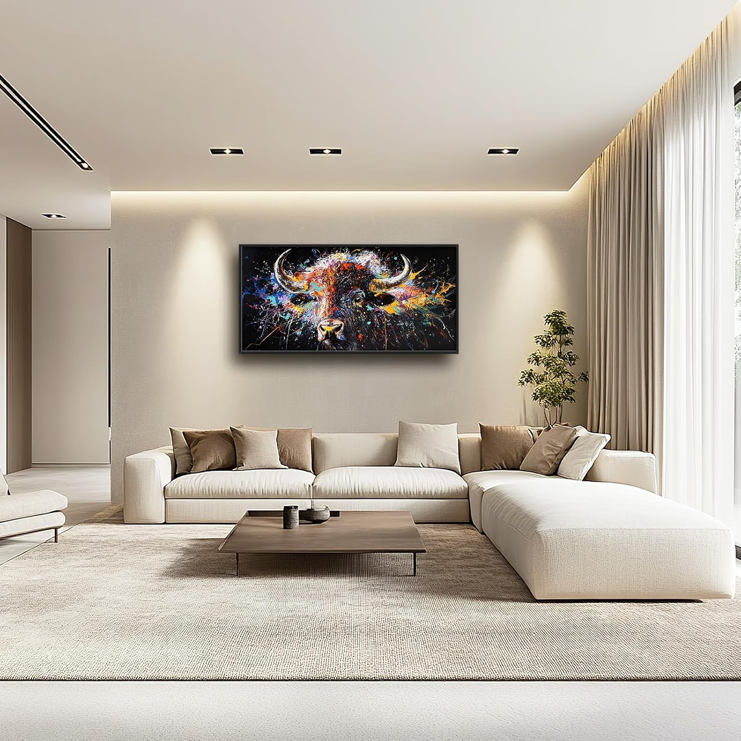 Framed Large Bison Buffalo Wall Art for Living Room, Oversized Graffiti Yak Cow Wall Decor Banksy Bull Canvas Painting Animal Pictures Modern Artwork for Living Room Bedroom Office 60"x30"
