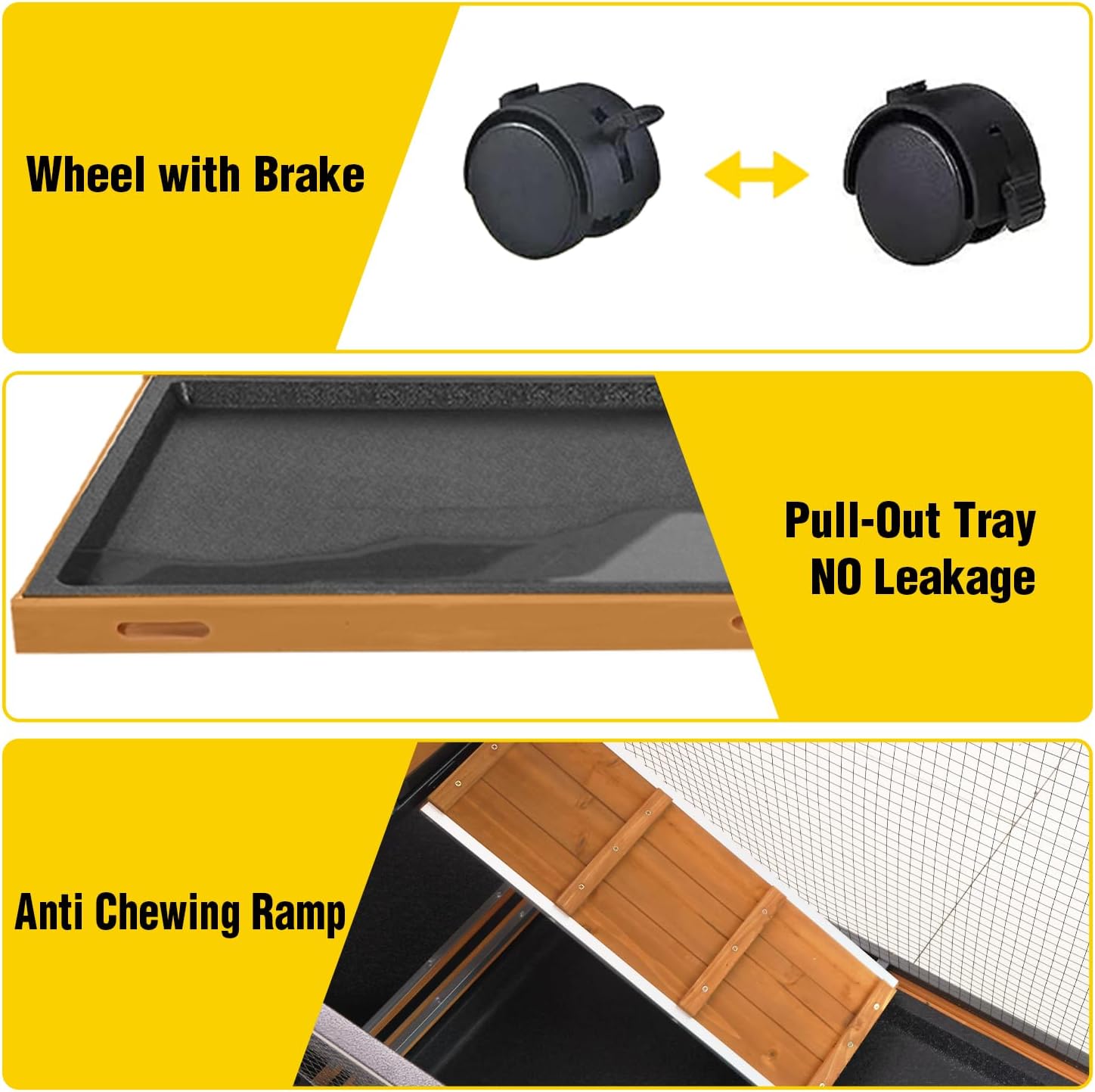 AIVITUVIN Rabbit Hutch Indoor with Metal Frame Rabbit Cage with Pull Out Tray No Leakage Bunny Cage with Wheel Guinea Pig Cage