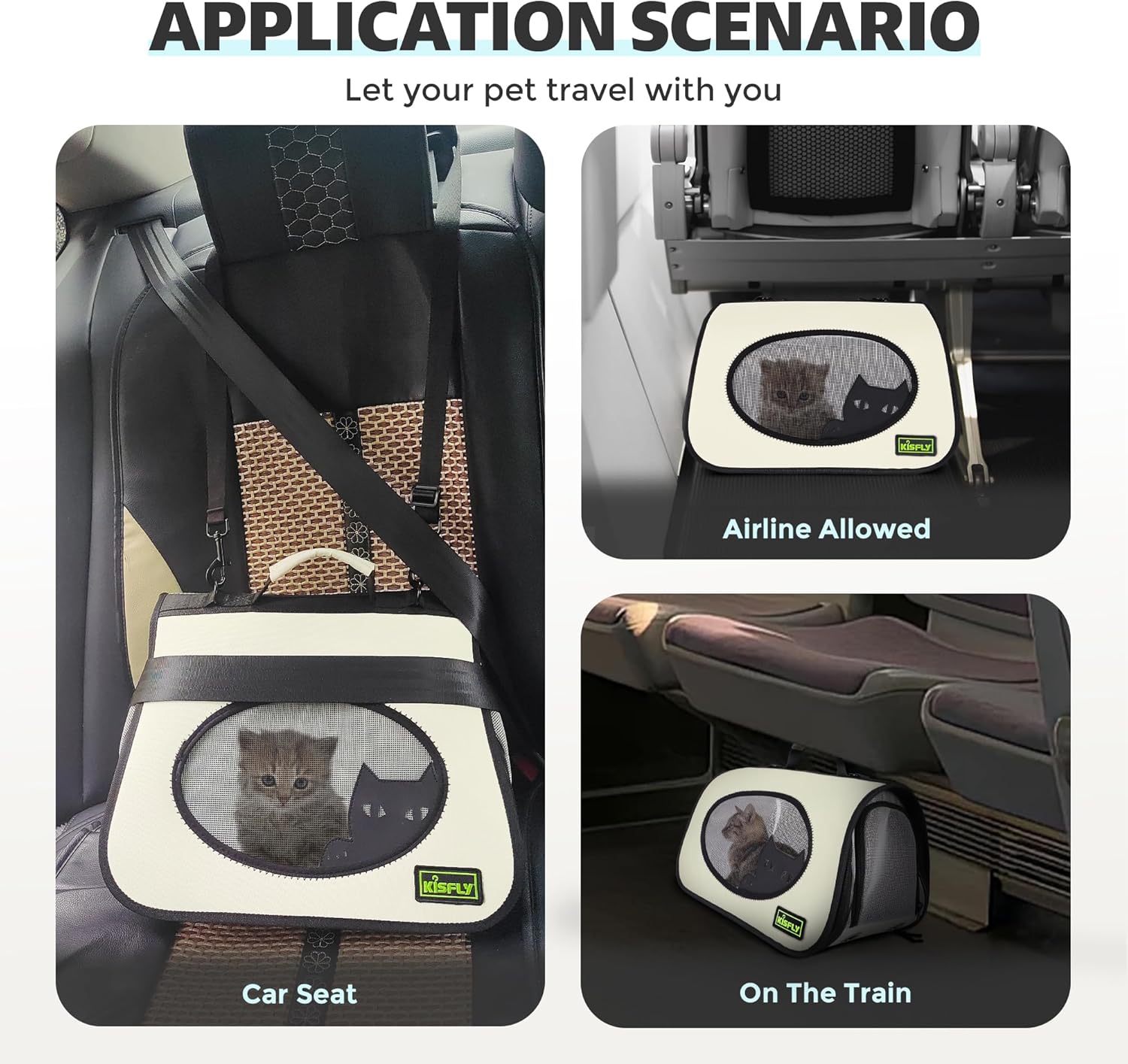 • TSA APPROVED PET CARRIER: This cat carrying bag is light and comfortable, suitable for outdoor activities. It is also a perfect travel carrier by car, train, plane, etc. The size of this airline approved cat carrier is suitable for most airlines such as Delta Airlines, American Airlines, United Airlines etc. However, there are differences and changes in the standards of each airline. It is recommended to check the regulations of specific airlines before travel.