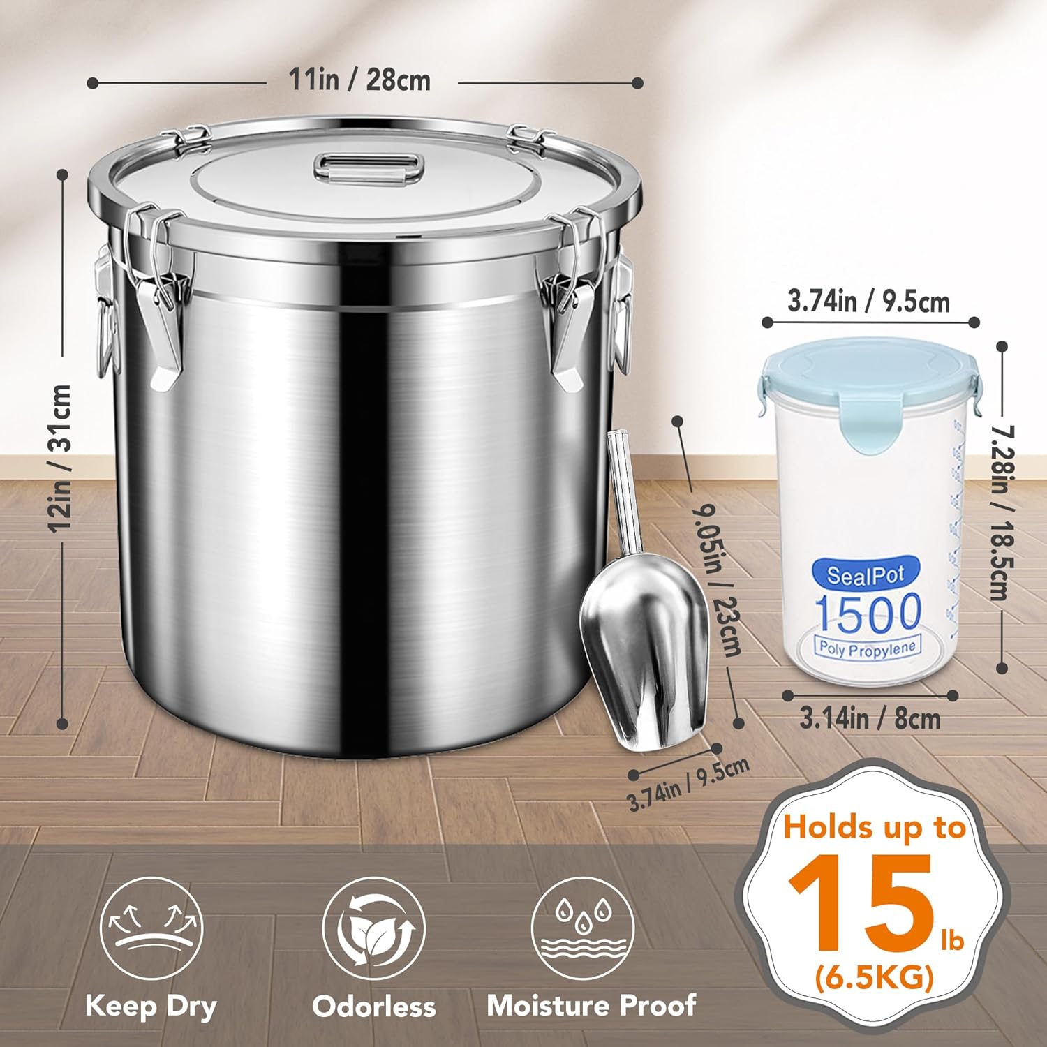 - Stainless Steel with Sealed Lid Material: Our dog food storage containers is made of stainless steel, which is more durable than ordinary plastic food storage buckets. The dog food storage containers with a lid can maximize the original freshness of food