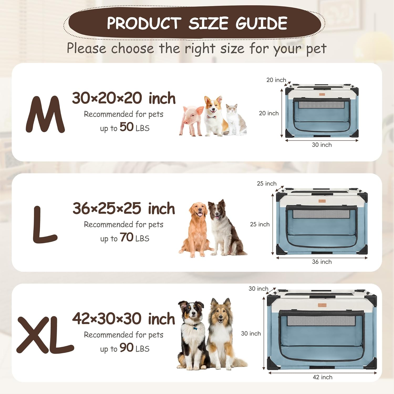 - MULTI-PURPOSE & MULTI-SIZE—Suitable for indoor rest, training, and isolation; outdoor travel, camping, or as a temporary fence, meeting diverse usage scenarios. The pet cage comes in 3 sizes, please select the appropriate size for your pet before purchase