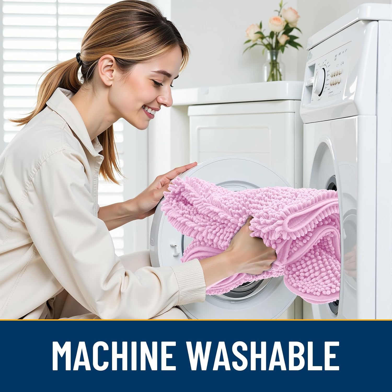 Smiry Dog Door Mat for Muddy Paws 30x20, Absorbs Moisture and Dirt Doormat, Non-Slip Washable Quick Dry Chenille Front Door Mat Indoor Entrance, Entryway Carpet for Inside Floor, Pink