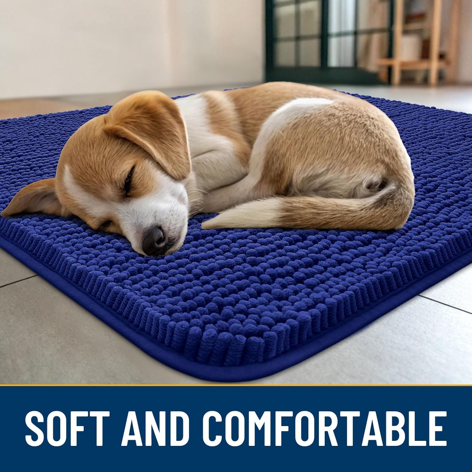 Smiry Dog Door Mat for Muddy Paws 59x24, Absorbs Moisture and Dirt Doormat, Non-Slip Washable Quick Dry Chenille Front Door Mat Indoor Entrance, Entryway Carpet for Inside Floor, Navy Blue