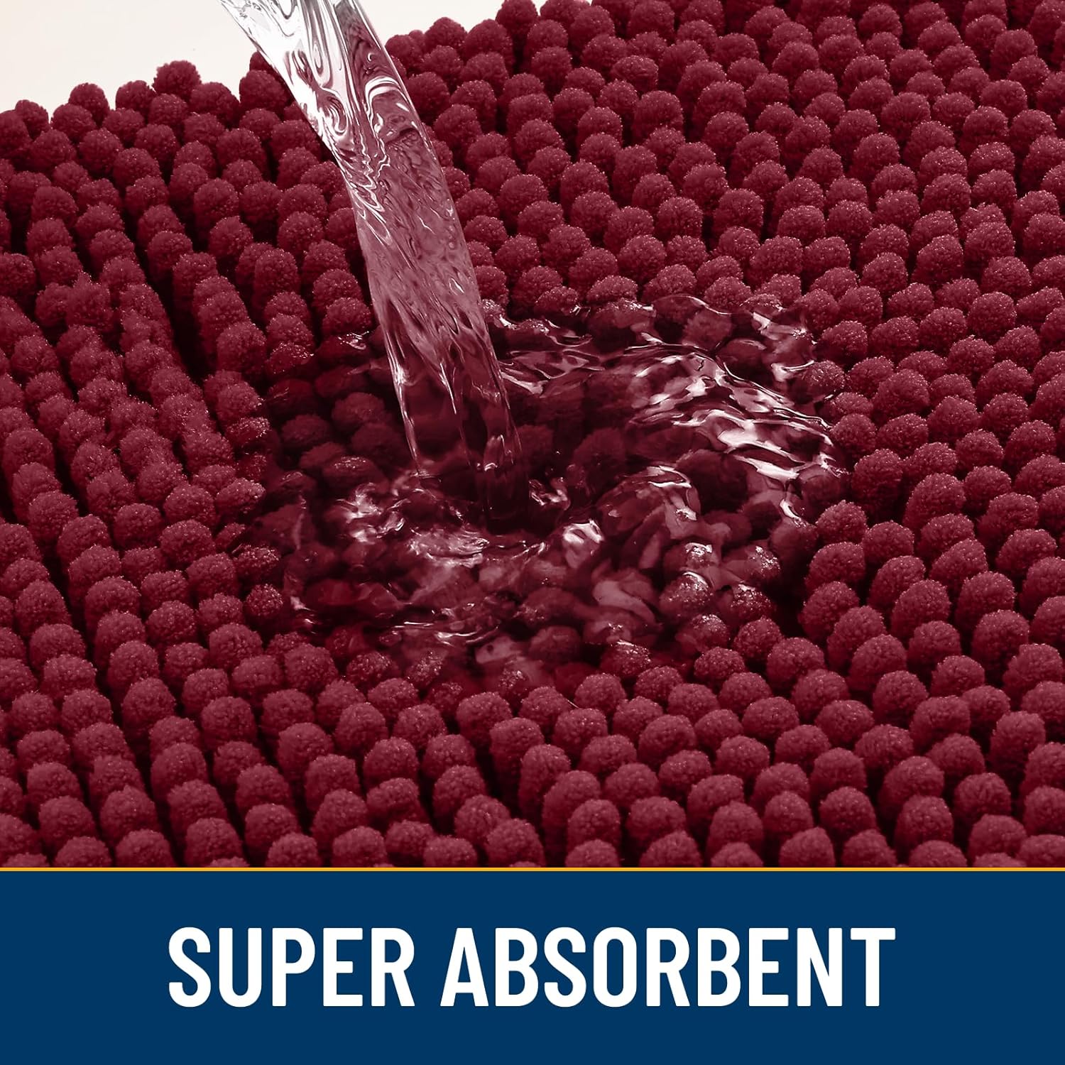 Smiry Dog Door Mat for Muddy Paws 59x24, Absorbs Moisture and Dirt Doormat, Non-Slip Washable Quick Dry Chenille Front Door Mat Indoor Entrance, Entryway Carpet for Inside Floor, Burgundy