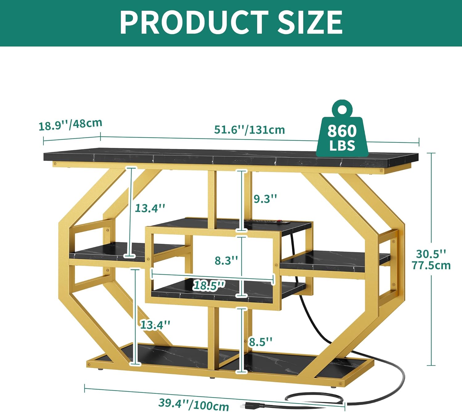 YITAHOME Heavy Duty 55-75 Gallon Fish Tank Stand with Power Outlet, Marble Aquarium Stand for Fish, Turtle, Reptile Terrarium, Shelves for Fish Tank Accessories Storage, 860LBS Capacity, Gold