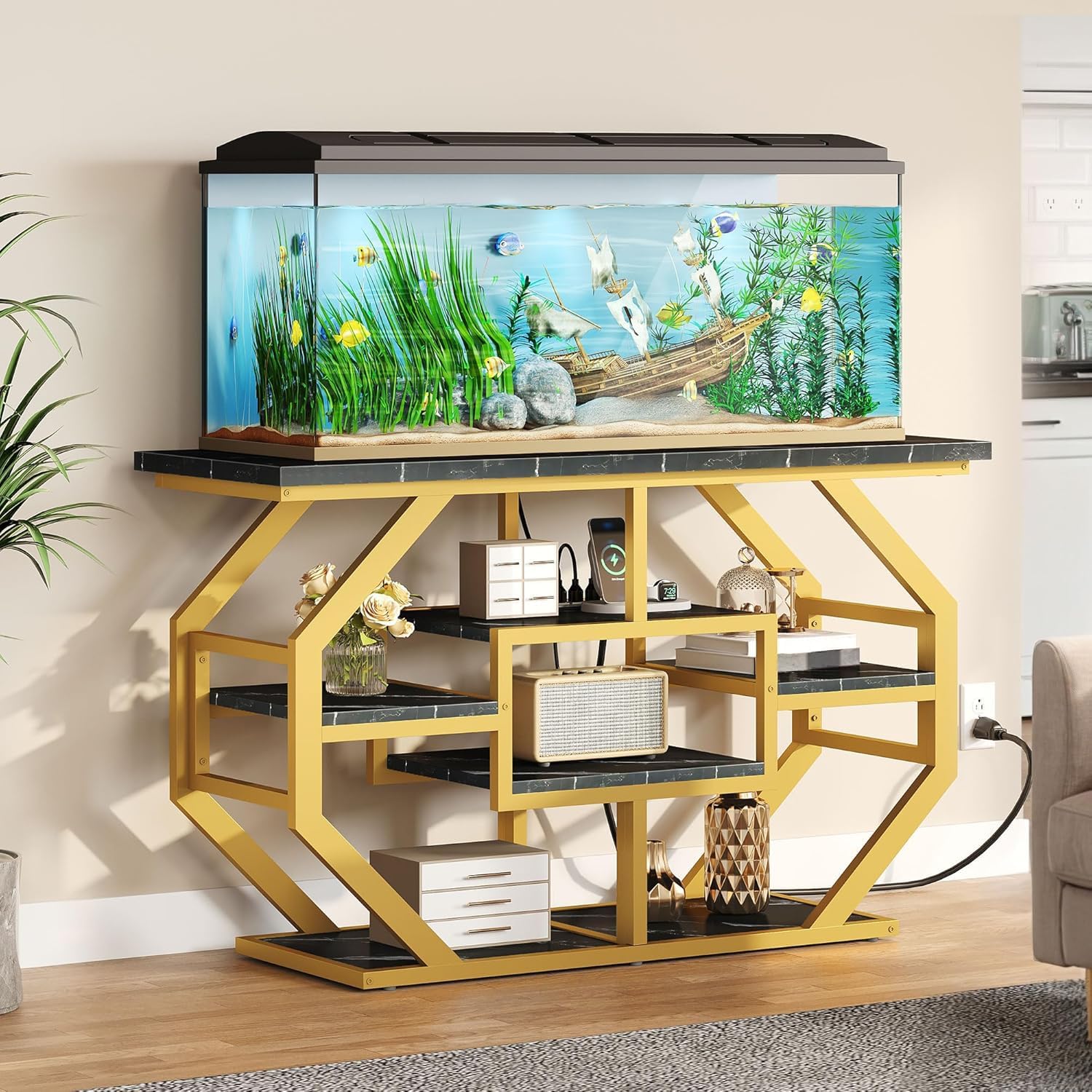 - Elevate Spaces: Crafted with marble veneer top and a modern openwork frame base, our aquarium stand effortlessly blends form and function, elevate the aesthetic of any space, from the entryway to the living room