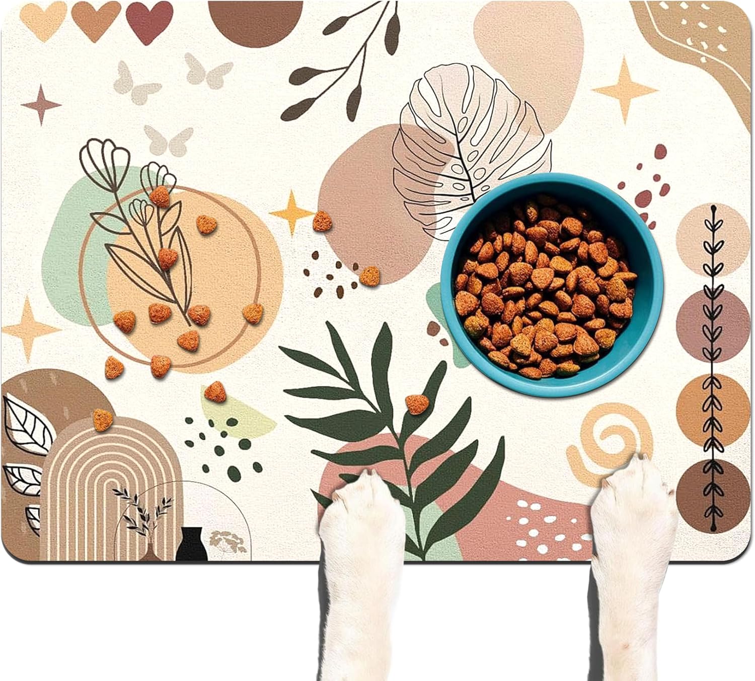 - Dog Food Mat & Cat Food Mat - Our premium pet food mat provides the perfect solution for messy drinkers/eaters! This extra-large pet feeding mat catches all spills from dog bowl mat and water dishes, keeping your floors spotless.