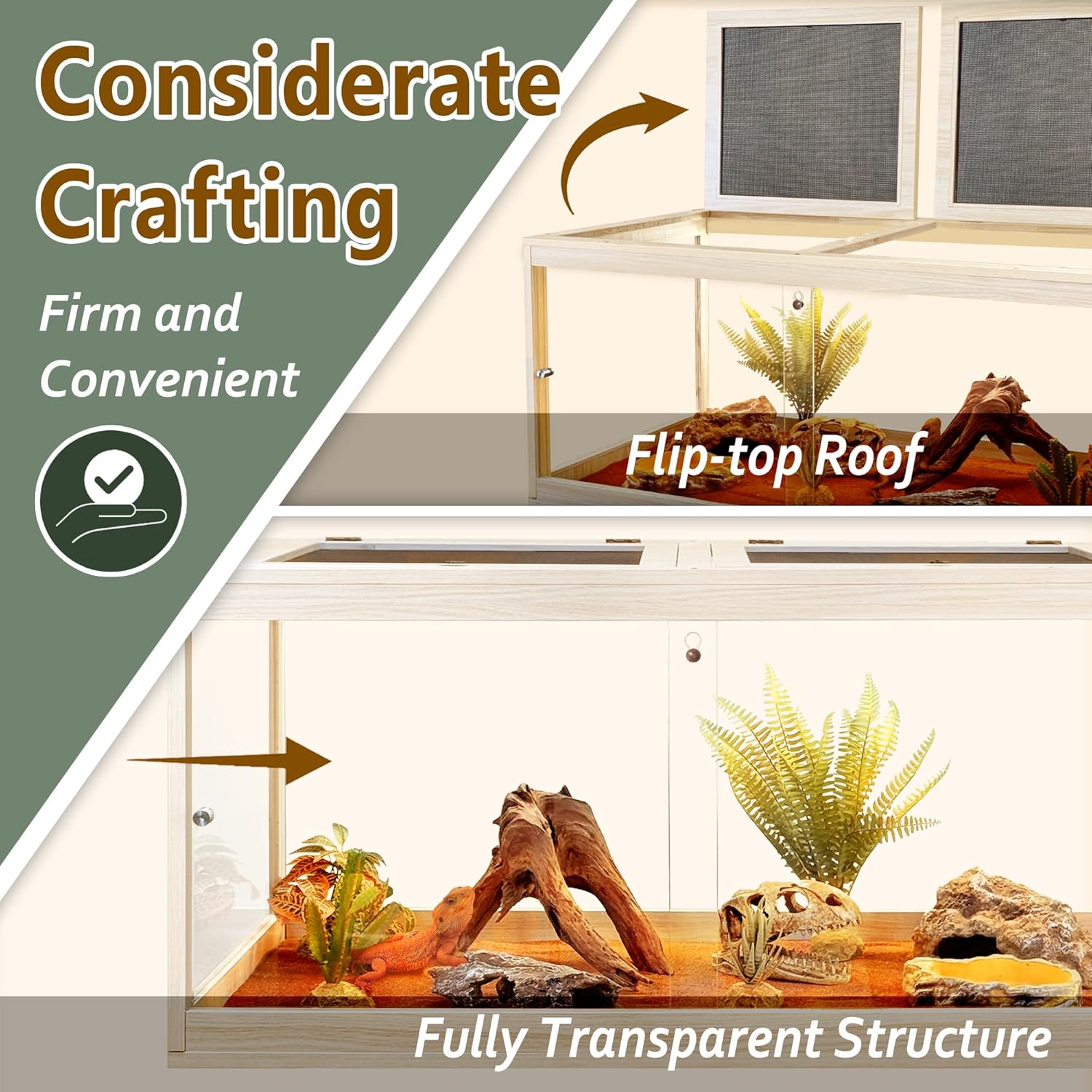 • 【High-Quality Reptile Habitat】Designed for reptile enthusiasts who seek a dependable and comfortable space for their pets, this high-quality habitat is crafted from sturdy solid wood treated with a water-repellent polyester coating. It's ideal for terrestrial reptiles and not intended for aquatic use, providing a dry and stable environment for daily activity.