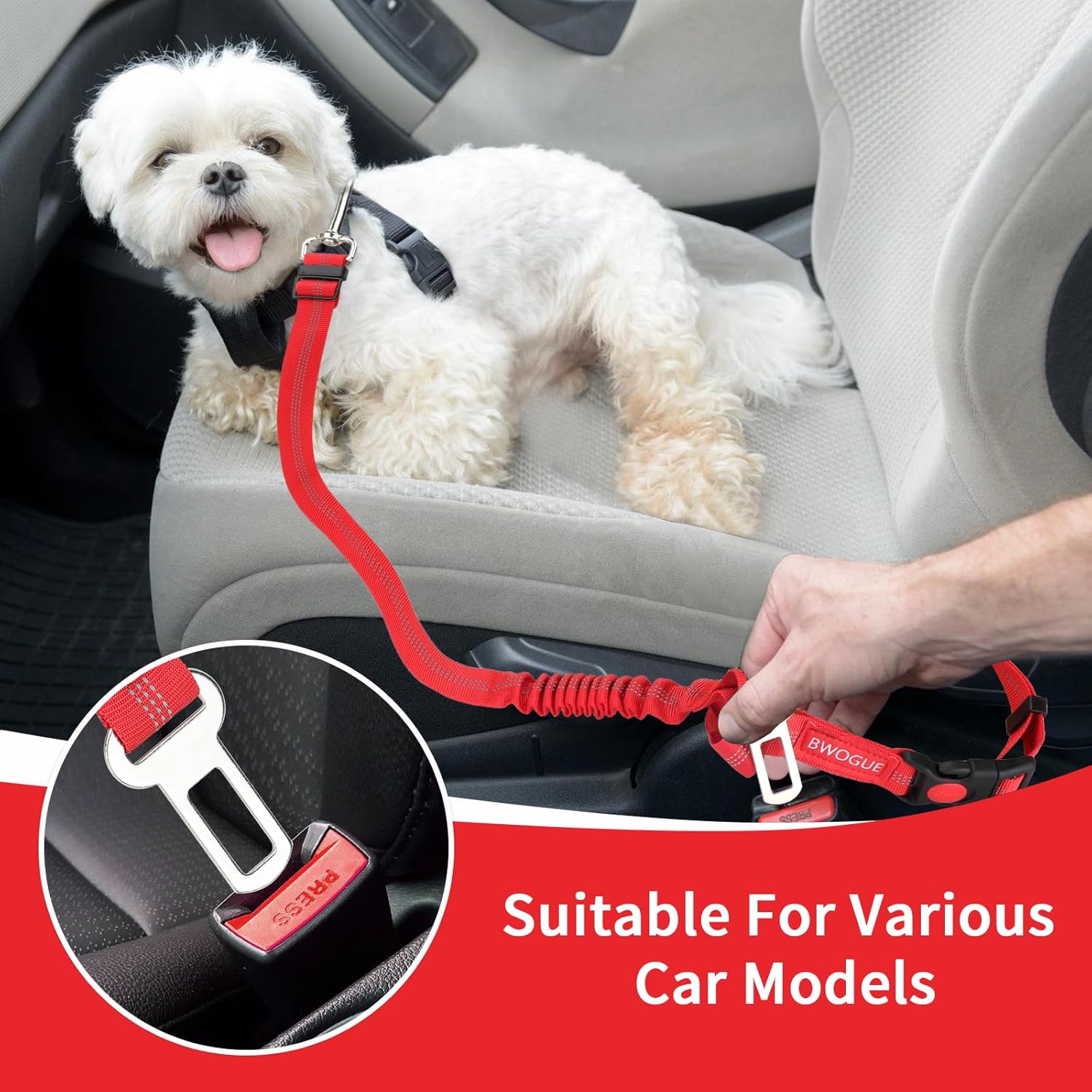 - Higher Security : The elastic buffer bungee with a reflective stitching design can prevent your dog from getting hurt when they are in an vehicle or in low-light environments. The headrest restraint can also protect your dog when they are pulled hard outside and help you locate them quickly to know thier status. The pet car seat belt allows your dog feel more comfortable and give you more peace of mind