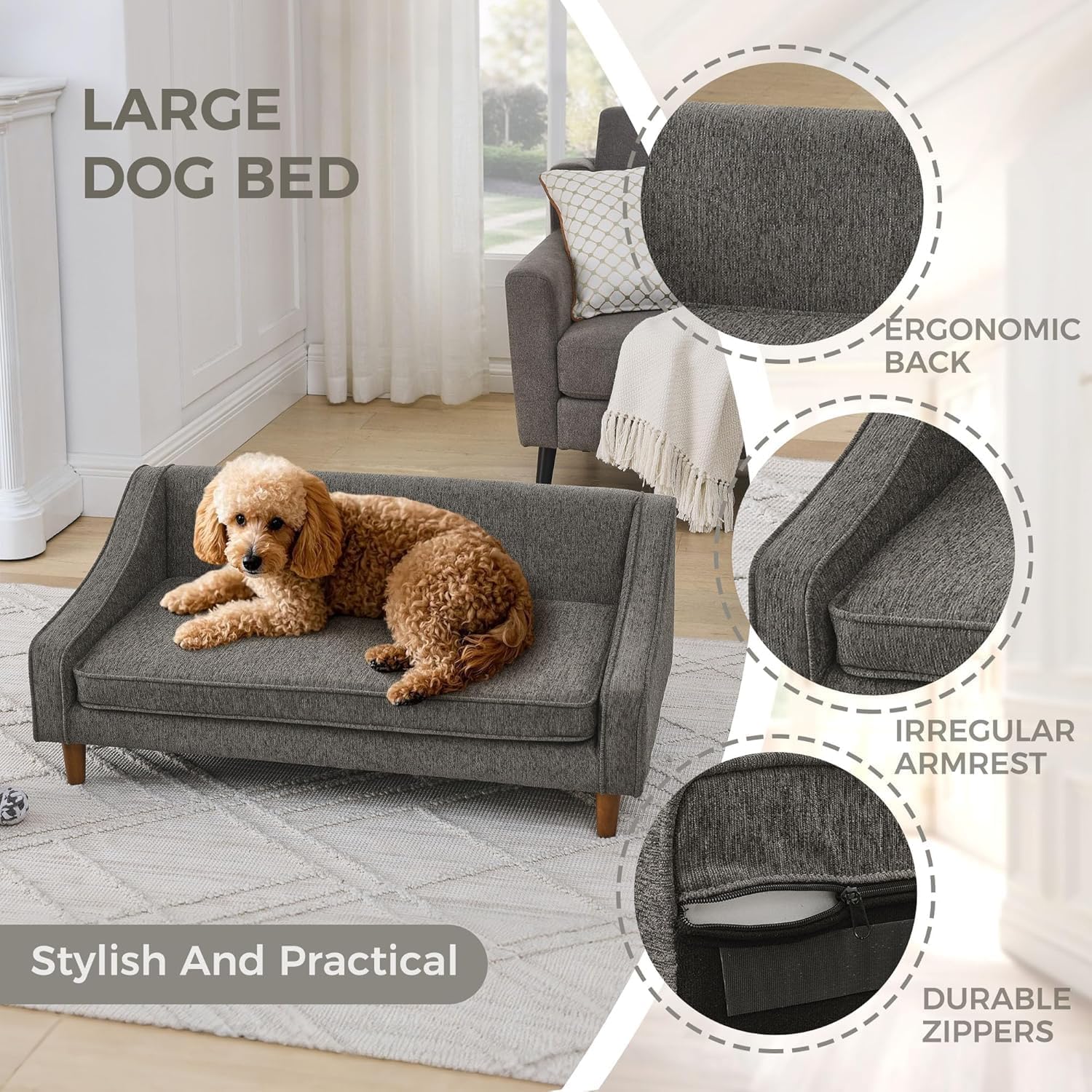 Dog Sofa Couch for Medium to Large Dogs, Durable Pet Sofa with Washable Fabric, Elevated Mini Dog Bed with Wooden Legs for Medium and Large Dogs, Dark Grey