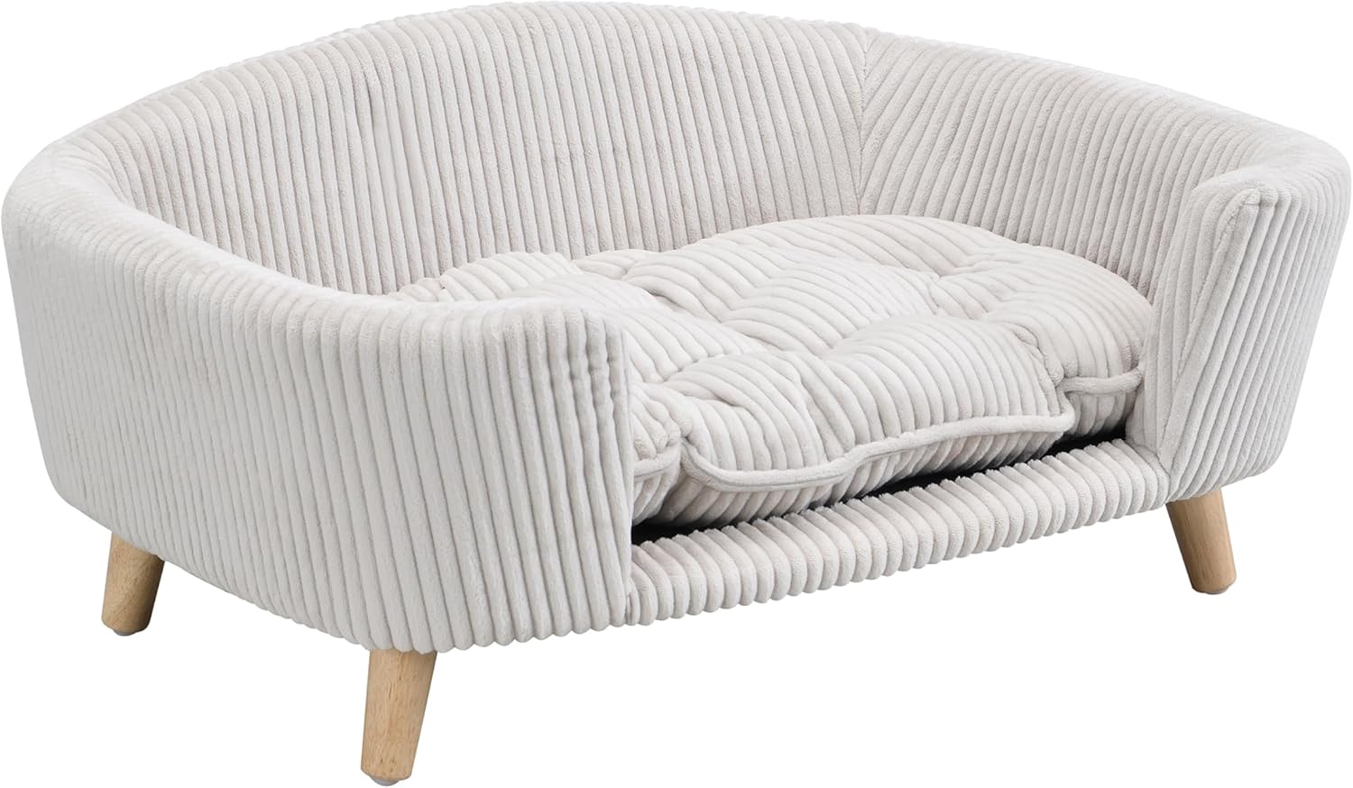 - Soft Corduroy Upholstery: The classic striped corduroy fabric offers a soft, calming surface your pet will love. The texture adds a cozy touch while being resistant to everyday wear and tear. Easy to clean and designed with both comfort and durability in mind