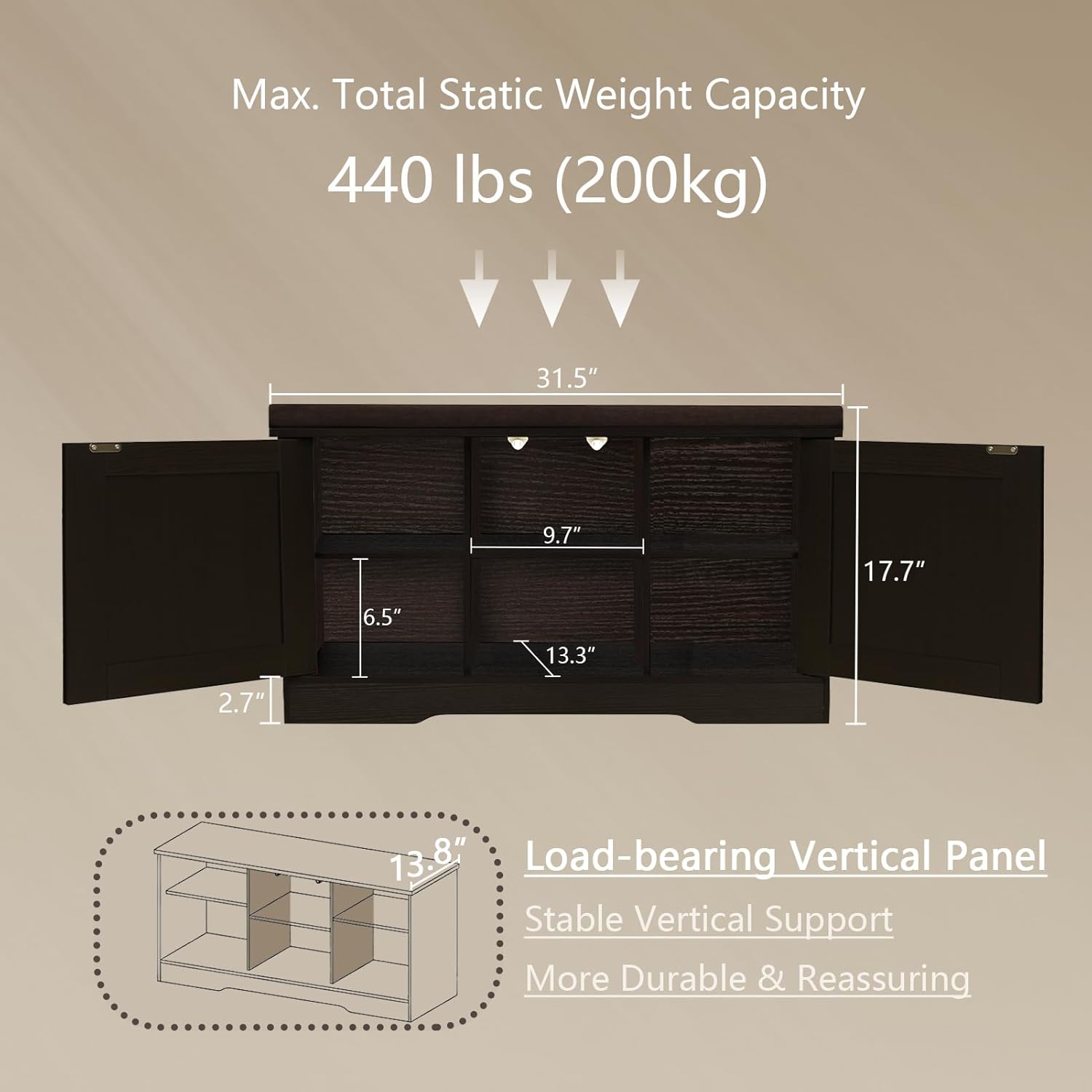 - Product Dimensions : 13.8"D x 31.5"W x 17.7"H