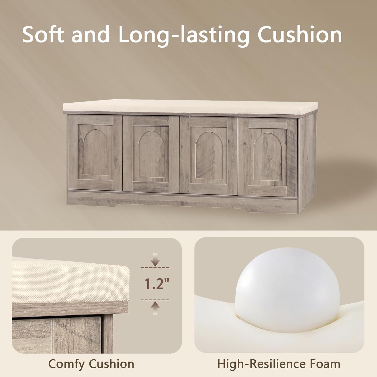 - 【Effortless Push-to-open Door】Feature a fully enclosed design with a press-to-open mechanism, keeping shoes clean and tidy while avoiding accidental bumps against door handles during use. Reasonable height and soft cushion let you change shoes by sitting on the bench more comfortable without bending down or squatting
