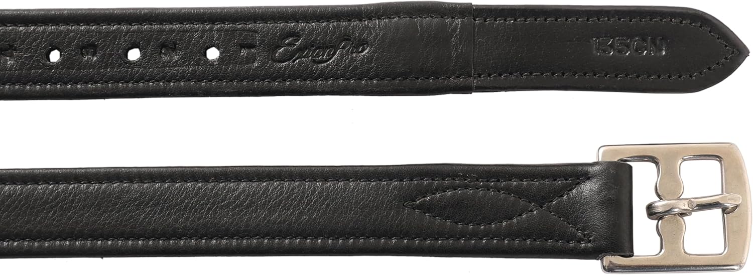 Exion FlexiStrong Stirrup Leathers for English Saddle | Ultra-Soft Cow Calfskin with Nylon Core | 1” Wide Stirrup Leathers for Daily Use | Sizes 48" to 62" | Black, Brown