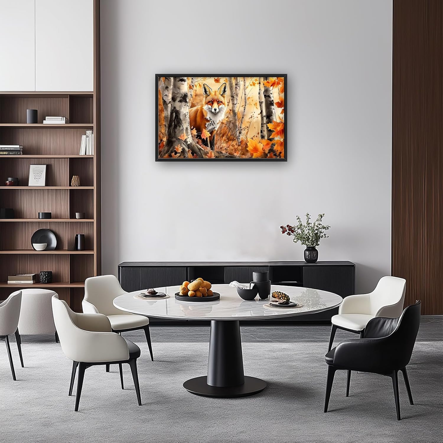 Large Fox Wall Art for Living Room, Framed Oversized Fall Autumn Forest Wall Decor Tree Maple Leaves Canvas Painting Modern Artwork for Living Room Bathroom Bedroom Office Dining Room 36"x24"