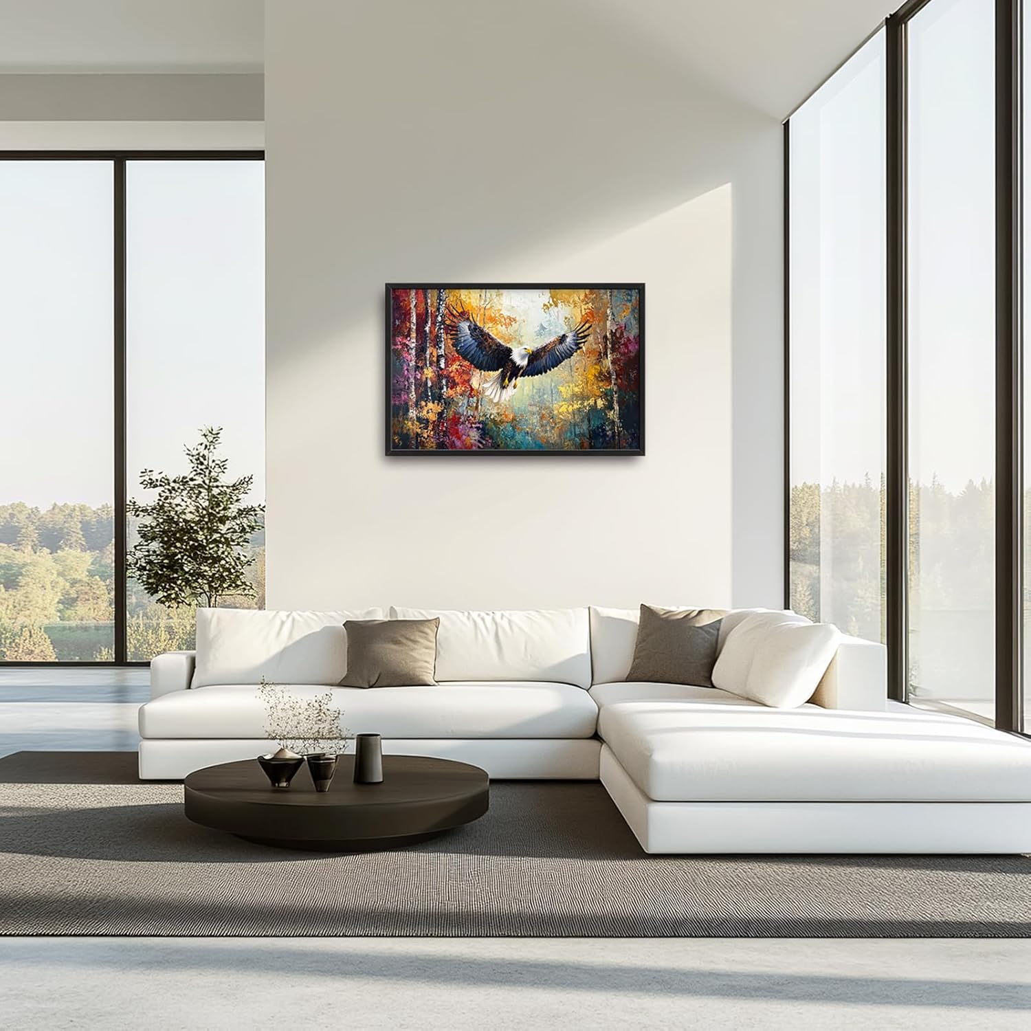 Extra Large Framed Bald Eagle Wall Art,Abstract Colorful Forest Wall Decor,Autumn Fall Forest Pictures for Living Room,Canvas Print Painting Modern Artwork Bedroom Office Home Decor 36L x 24W