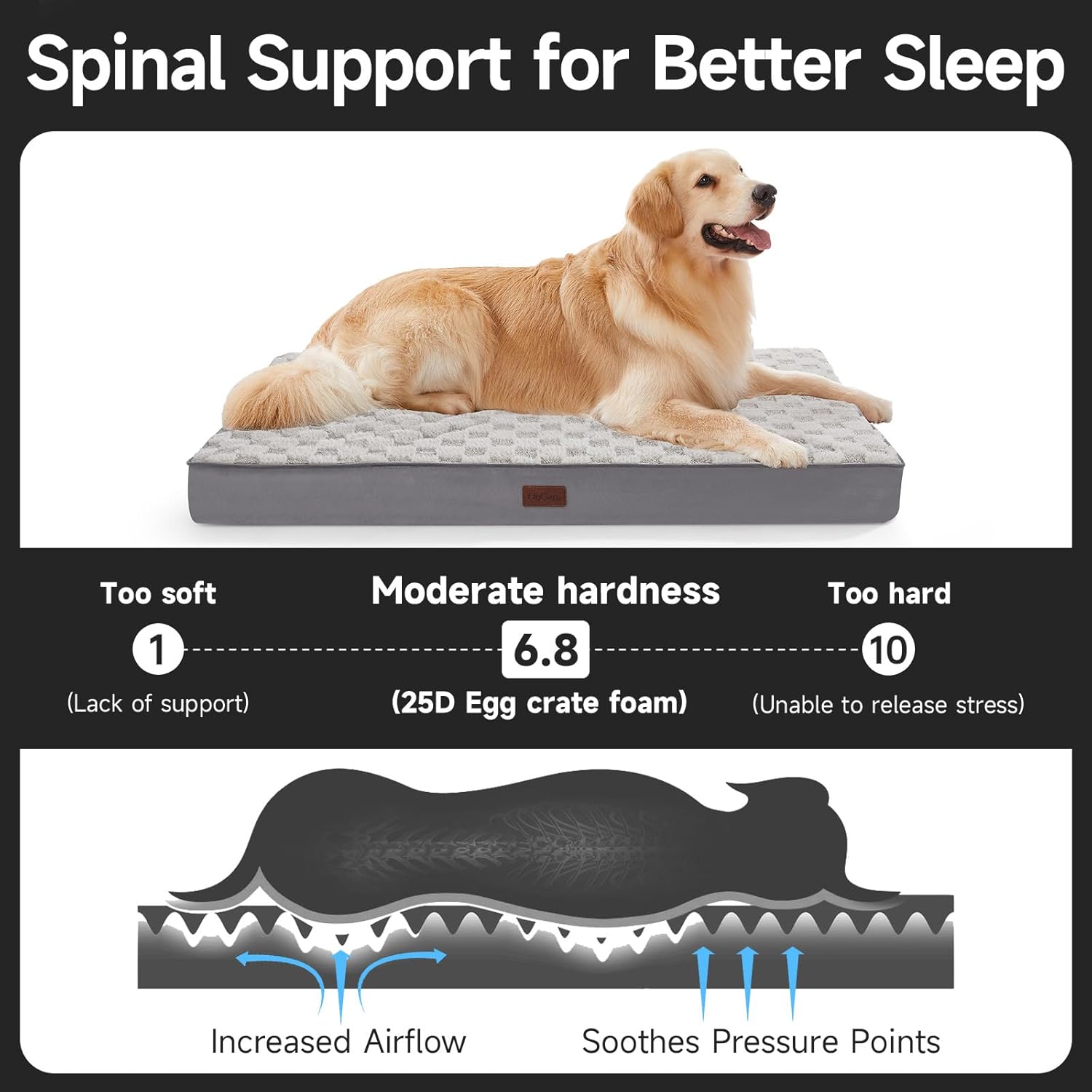 OhGeni Orthopedic Waterproof & Machine Washable Dog Bed for Large Pets, Suitable for Crates, 25D Egg Crate Foam, Non-Slip Bottom & Removable Cover, Checkerboard Fabric, 41 Inches(Gray)