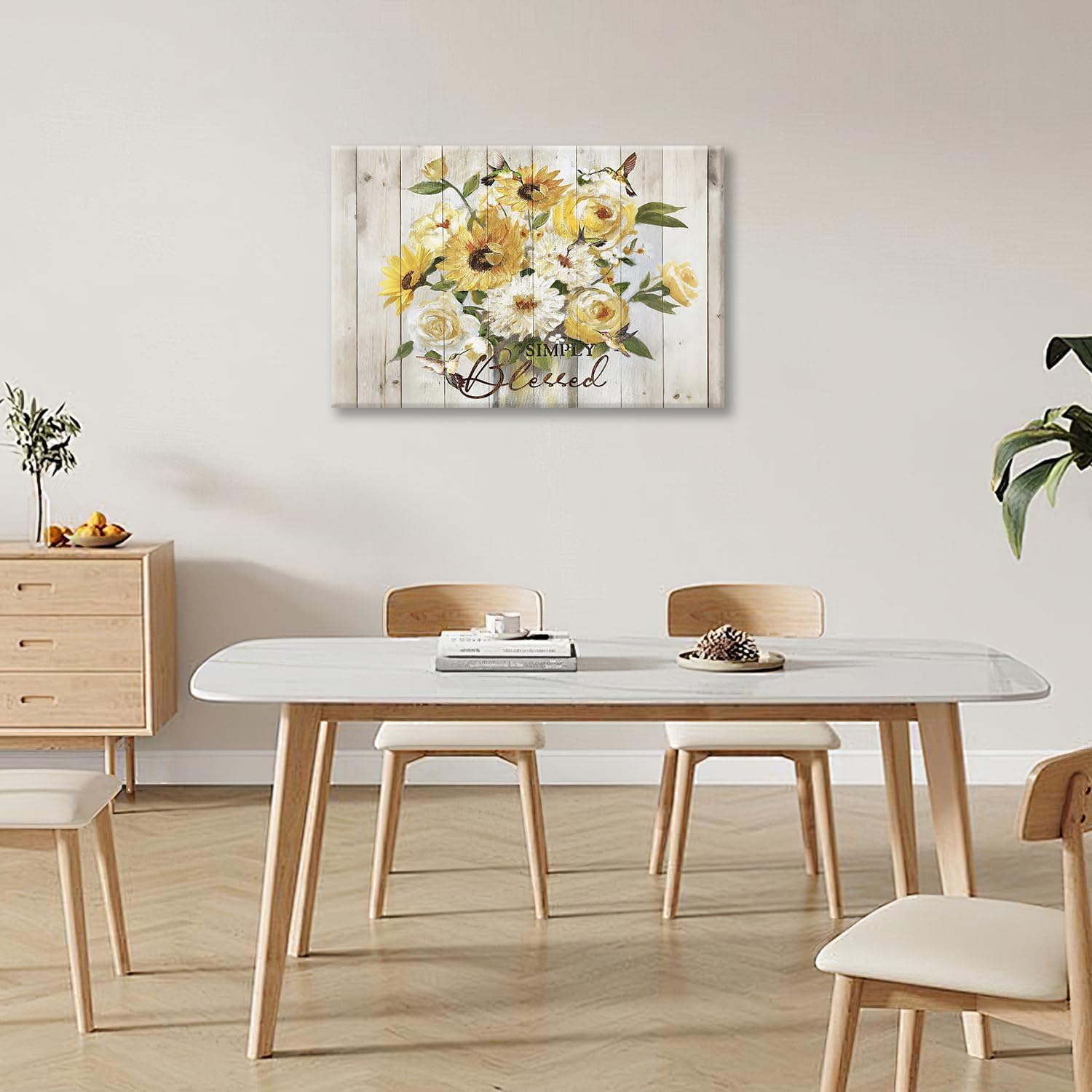 Sunflower Bathroom Pictures Wall Art, Simple Blessed Floral Bathroom Wall Decor, Flower Framed Painting Canvas Artwork for Bedroom Living Room Decorations 24"L x 16"W